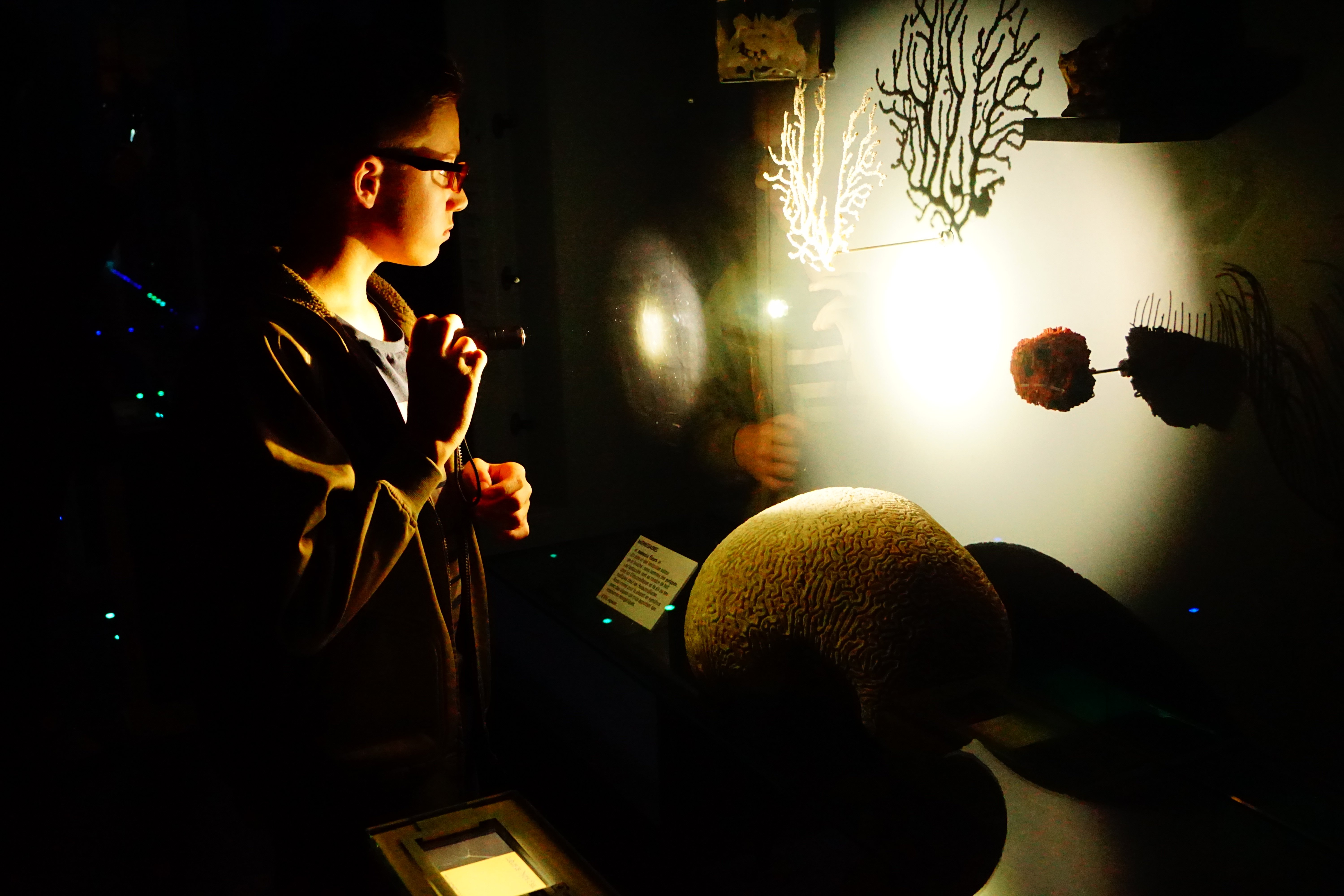 Grâce à sa lampe de poche, Yohan, 12 ans, a pu observer tous les spécimens du muséum. ©D.Gizard
