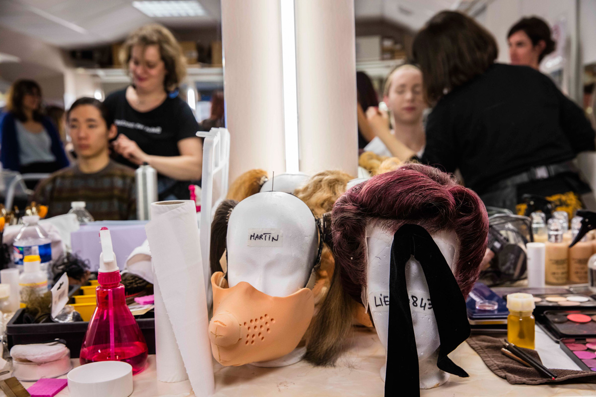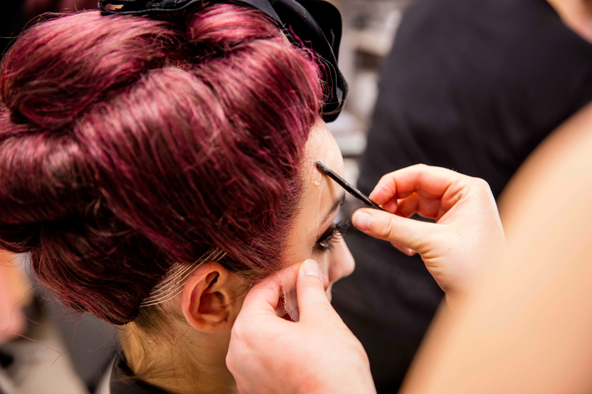 - Imagine que la perruque tombe sur la scène, pendant la représentation ! Alors on n’hésite pas à la fixer solidement : en s’aidant des crochets et surtout de la colle ! ( © Vincent Gire/Milan Presse).
