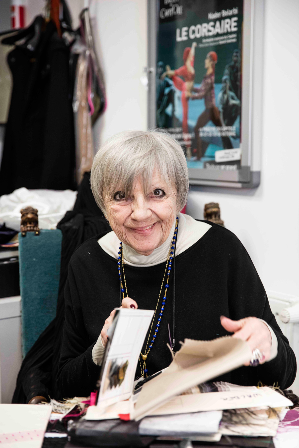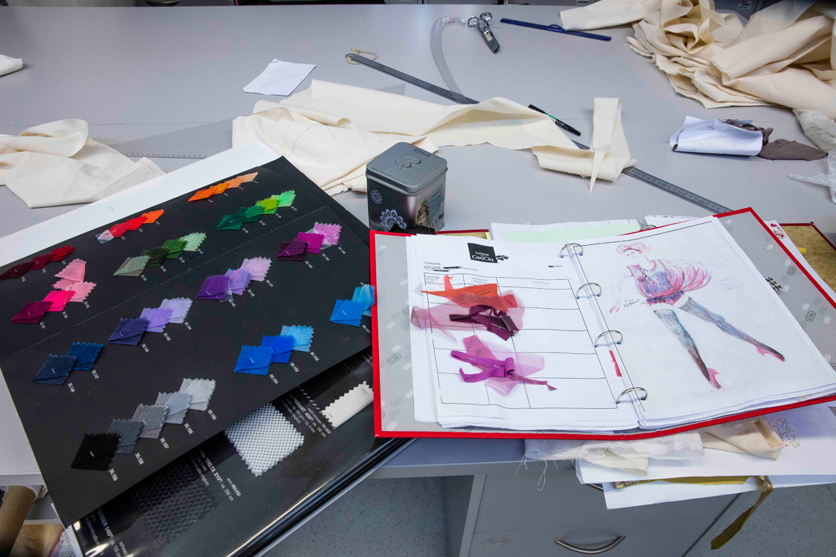 - Les costumes d’un opéra ou d’un ballet sont d’abord imaginés par un ou une artiste, comme ici Mine Vergès, une grande costumière venue de Paris. C’est elle qui crée les modèles, pour un spectacle en particulier, en accord avec le metteur en scène. (© Vincent Gire / Milan Presse).