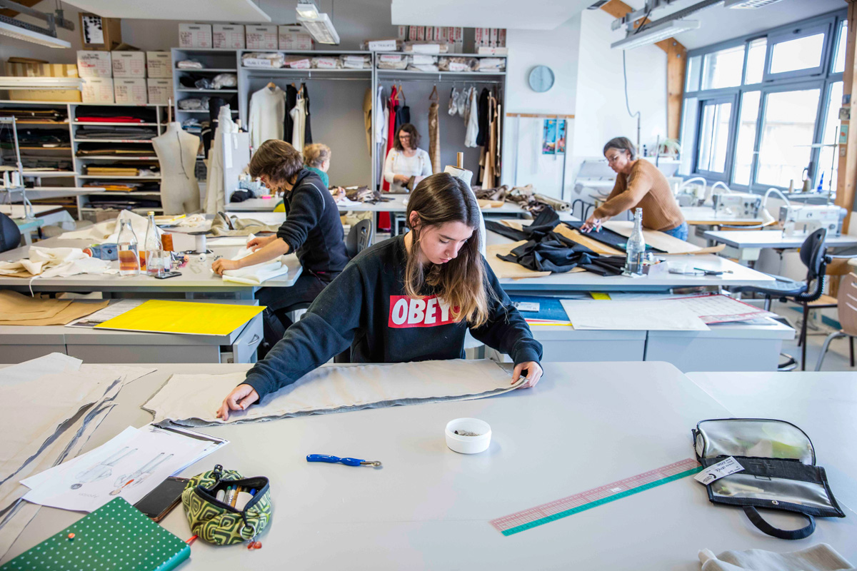 - Les morceaux de tissu sont découpés suivant le patron, puis assemblés. (© Vincent Gire / Milan Presse).