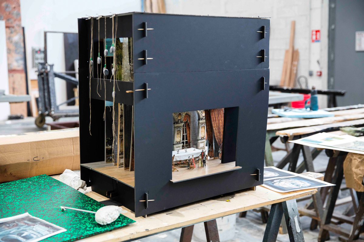 - Voici la maquette de La Traviata, un opéra joué à Toulouse, cette année. Les ficelles servent à faire monter et descendre les différents décors qui se succèdent au fil du spectacle. (© Vincent Gire / Milan Presse).