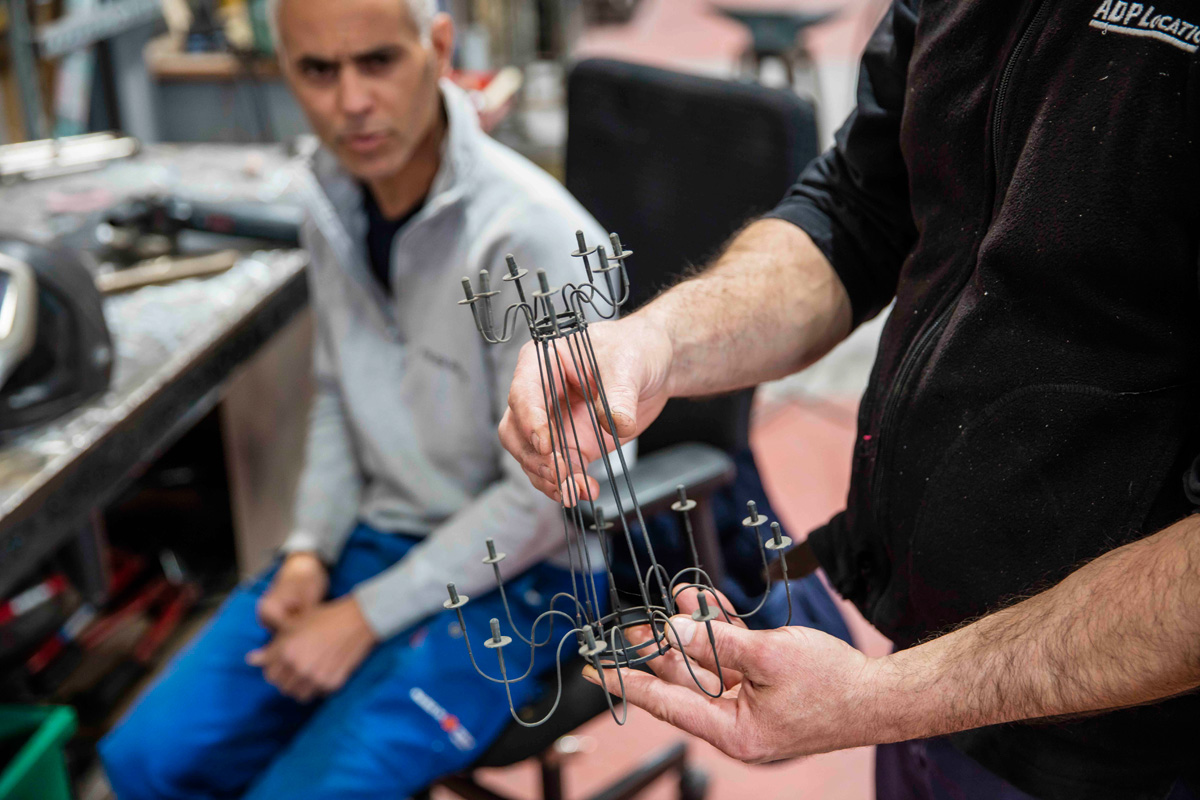 - Dans l’atelier « serrurerie », on fabrique aussi des accessoires : des lustres, par exemple. D’abord sous forme de maquette, puis ensuite en grandeur réelle. (© Vincent Gire / Milan Presse).