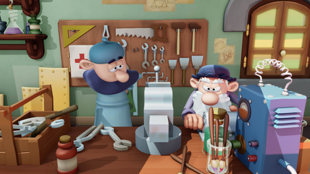 - Mais aussi de Léonard, l’inventeur à la barbe blanche. (© Léonard / Gulli / Canal J.)
