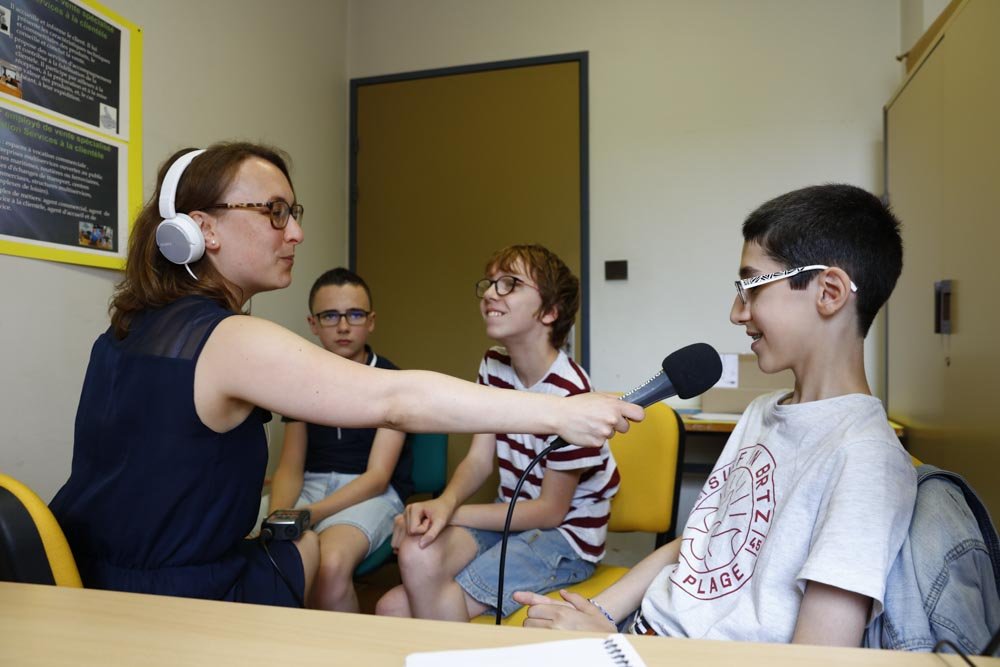 Pendant une heure, au CDI du collège, Estelle a commencé par expliquer aux élèves tout ce qu’il y a à savoir sur le métier de journaliste. Chacun avait alors sa petite question à lui poser : « Les journalistes partent-ils souvent en reportage dans d’autres pays ? Est-ce qu’ils peuvent se tromper dans les informations ? Il faut parler combien de langues pour être journaliste ? As-tu déjà interviewé Donald Trump ? Et Emmanuel Macron ? »