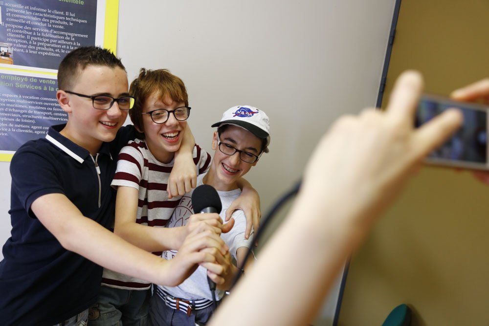 - Clic-clac c’est dans la boîte ! Les p’tits journalistes sont pris en photo pour apparaître sur le site de franceinfo junior et d’1jour1actu. © Vincent Gire / Milan presse
