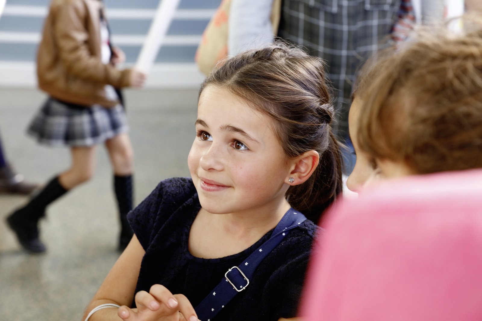 - Les enfants s’installent pour l’interview : qui se lance pour la première question ? (© V. Gire / Milan presse)