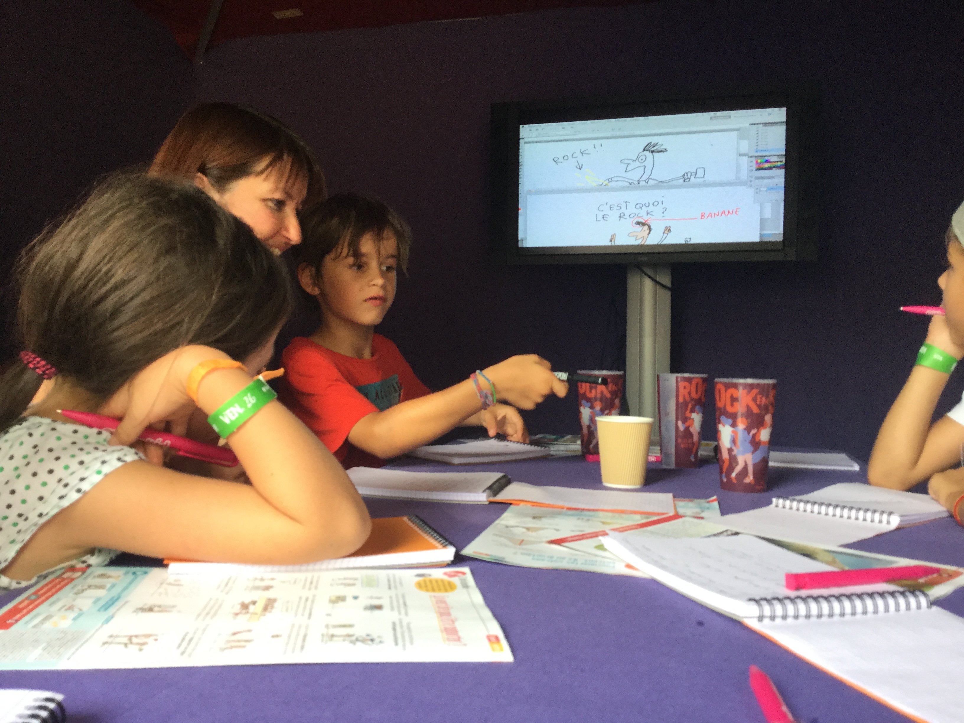 - Les enfants du Mini rock en Seine trouvent des idées pour écrire la vidéo « C’est quoi, le rock ? » (photo Isabelle Pouyllau / Milan Presse)