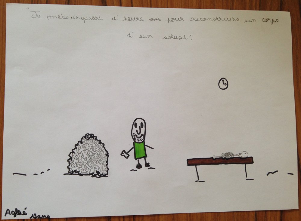 - Je mets un quart d’heure pour reconstruire le squelette d’un soldat de 200 os.