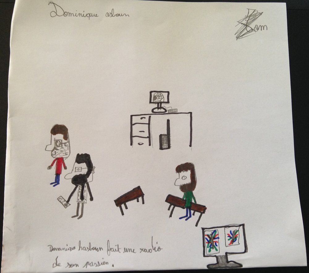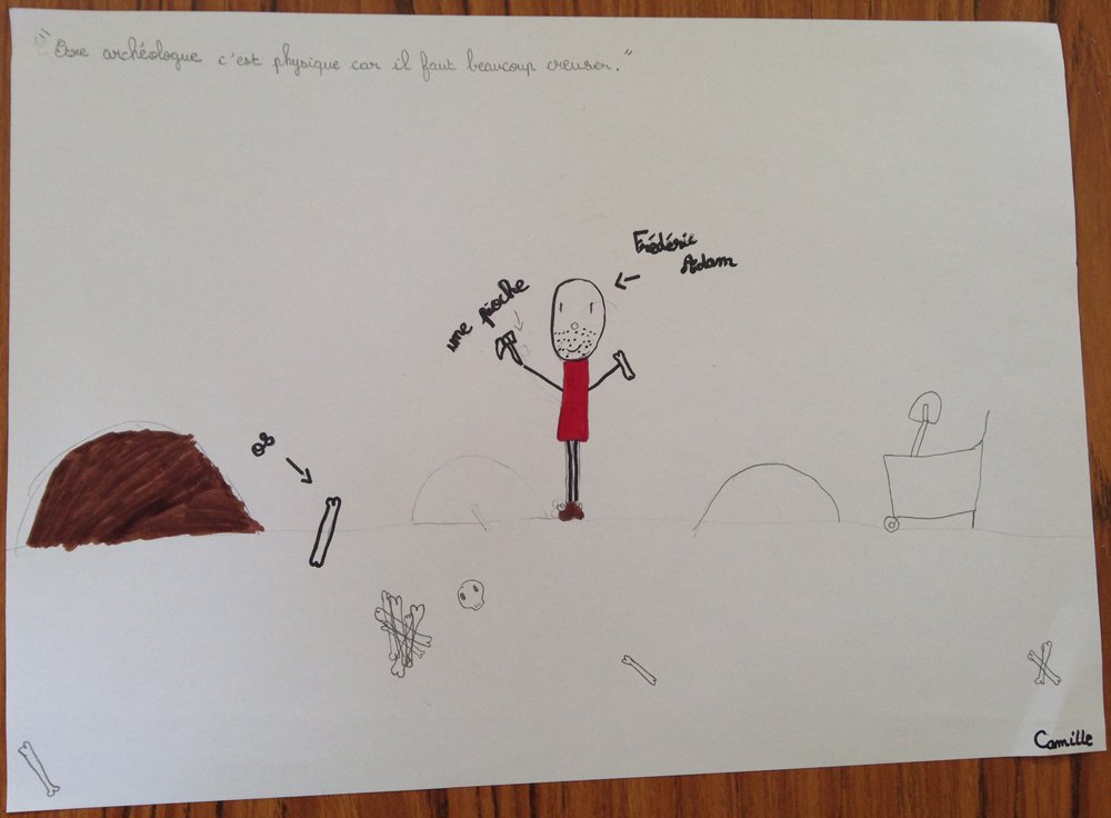 Dessins de presse réalisés par les enfants à partir de l’interview de l’archéologue Frédéric Adam :