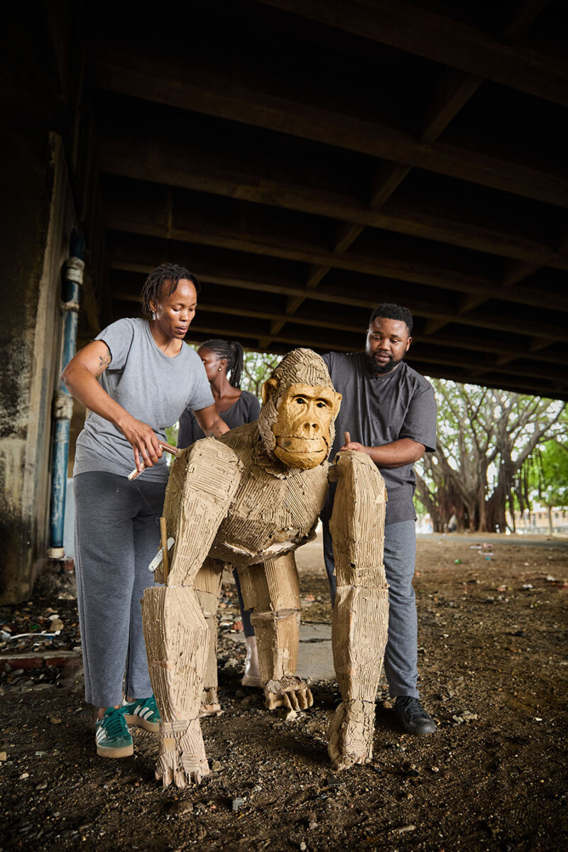 Fabriquées avec un maximum de matériaux recyclés dans un atelier de Cape Town, en Afrique du Sud, les marionnettes de The Herds sont animées par des dizaines de bénévoles. Ils s’entraînent durant plusieurs jours pour apprendre à donner vie aux animaux.