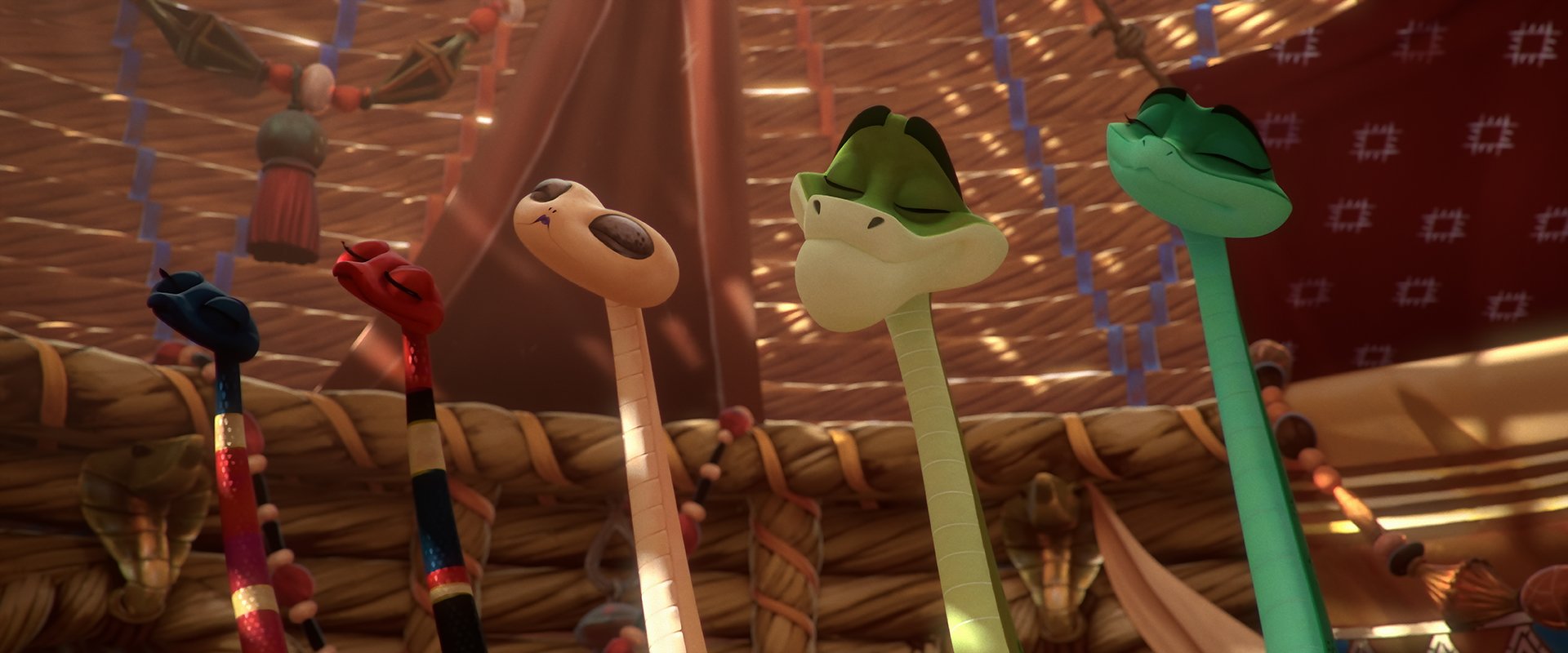 En animation, il est compliqué de donner vie à un serpent, un animal sans bras ni jambes. Tout passe par le regard. Par la voix aussi. Si Omar Sy et Louane doublent Ajar et Eva avec énergie, ils ne suffisent toutefois pas à les rendre véritablement attachants. Leur folle aventure, du coup, captive moins qu’un film comme L’Âge de glace, auquel on pense parfois. Restent d’autres personnages très rigolos, comme Pitt, scorpion froussard et sacrément menteur. Restent aussi de beaux moments, tel ce baiser entre deux serpents ondulant jusqu’à former un cœur.