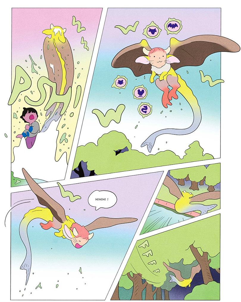 - Les dessins (un peu brouillons, réalisés au crayon de couleur) et la manière dont les cases sont organisées. Tout cela donne un côté encore plus rigolo et dynamique à l’ensemble.