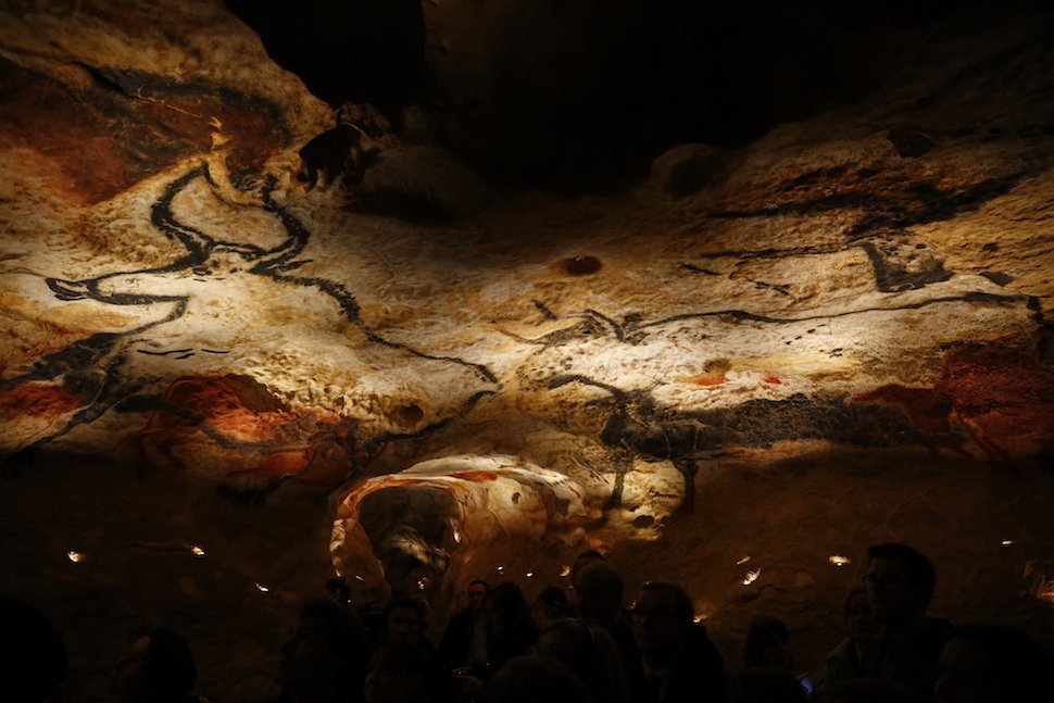 De grands taureaux noirs, des chevaux jaune clair, des bisons rouges… on se balade dans la reconstitution à taille réelle de Lascaux comme dans la vraie grotte. Pour construire le fac-similé de Lascaux, un immense atelier* s’est installé pendant plus de 2 ans dans le village. Grâce à des technologies très à la pointe, 25 artisans ont reproduit à l’identique chaque aspérité des parois de la grotte et les peintures, au millimètre près. Et, pour s’assurer que la reproduction soit le plus fidèle possible à l’original, un groupe d’experts, constitué de préhistoriens et d’archéologues, ont validé chacun des choix faits dans le fac-similé : l’éclairage plus ou moins fort, la hauteur des peintures ou du sol.