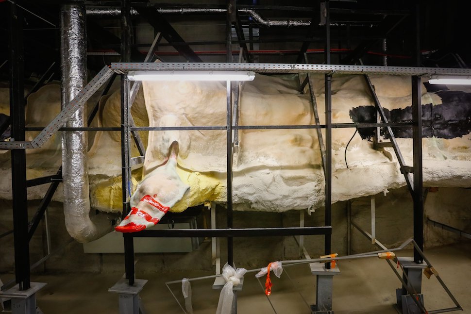 - Ces grandes coques maintenues par une armature métallique sont les parois du fac-similé de la grotte, vues de l’extérieur. © Vincent Gire / Milan presse