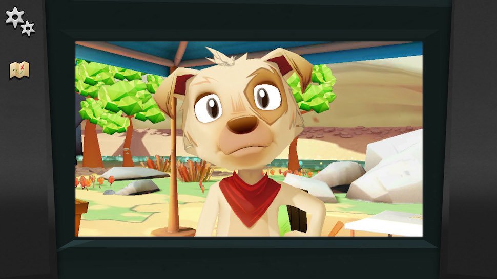 - Une image de ce que tu peux voir sur la tablette, avec le chien Rob’, ton compagnon de visite. © AXYZ