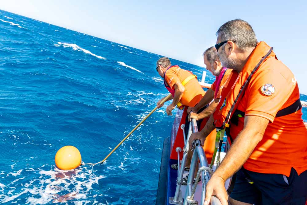 Sur le pont du bateau, l’un des sauveteurs lance une énorme bouée à l’eau et s’écrie : « Un homme à la mer ! ». C’est le début de l’exercice. Toute l’équipe a alors pour mission de repêcher la bouée, comme si c’était une personne en train de se noyer.