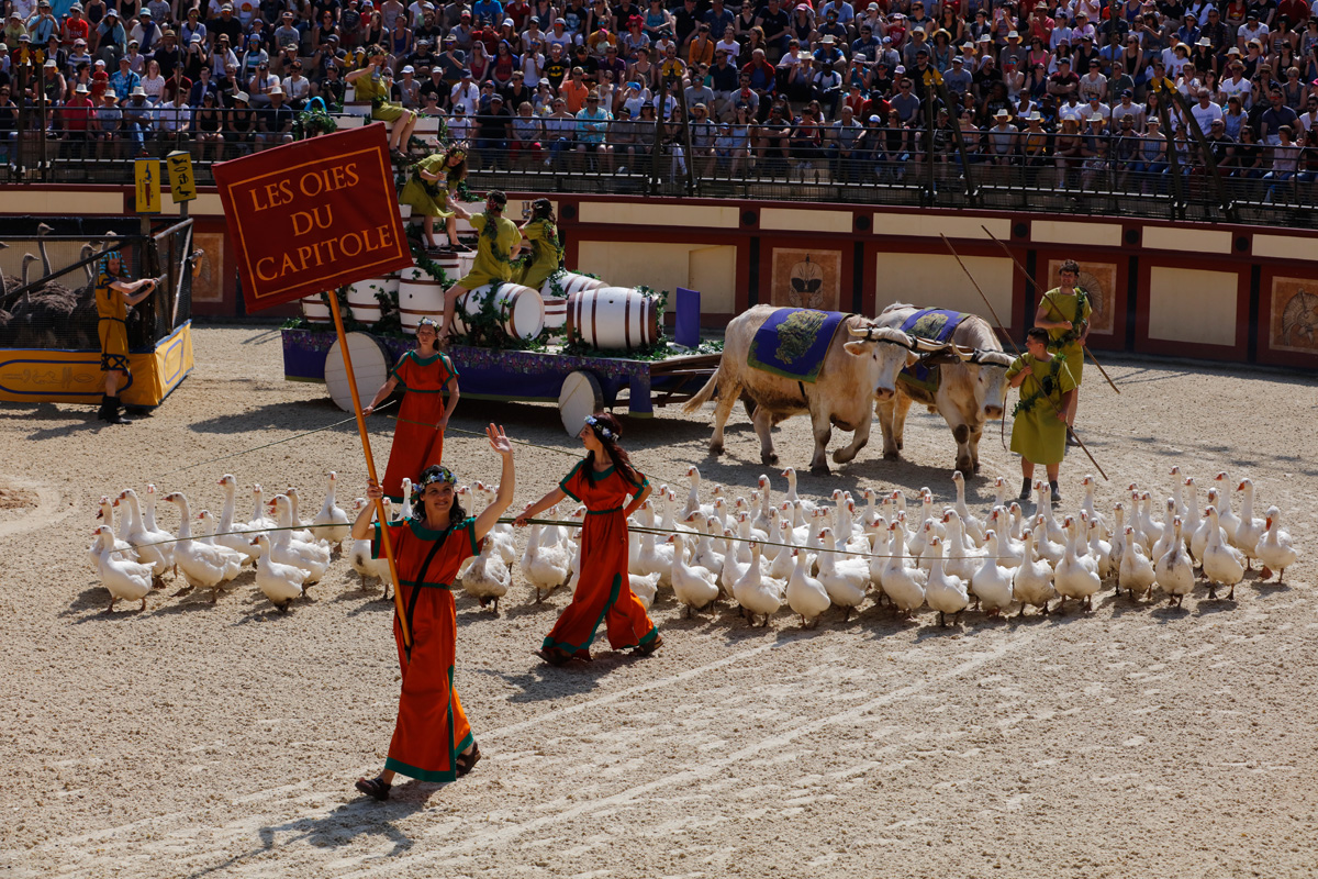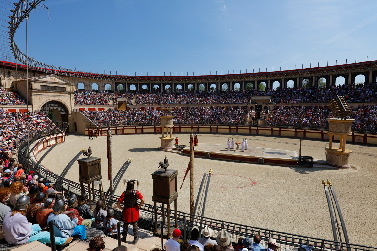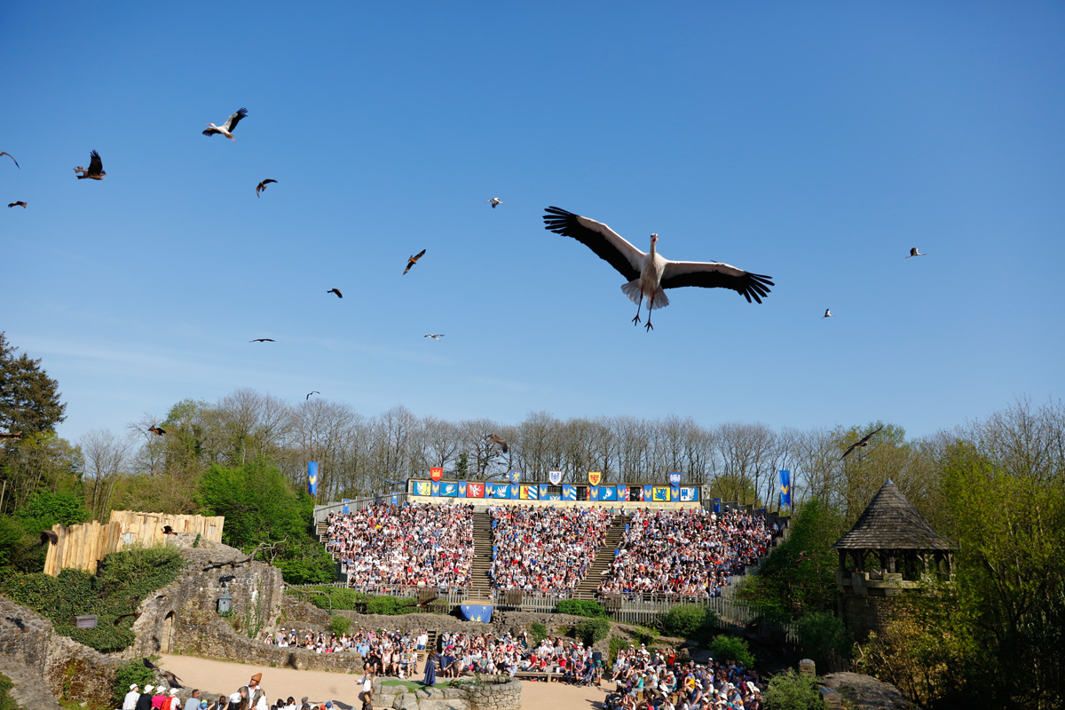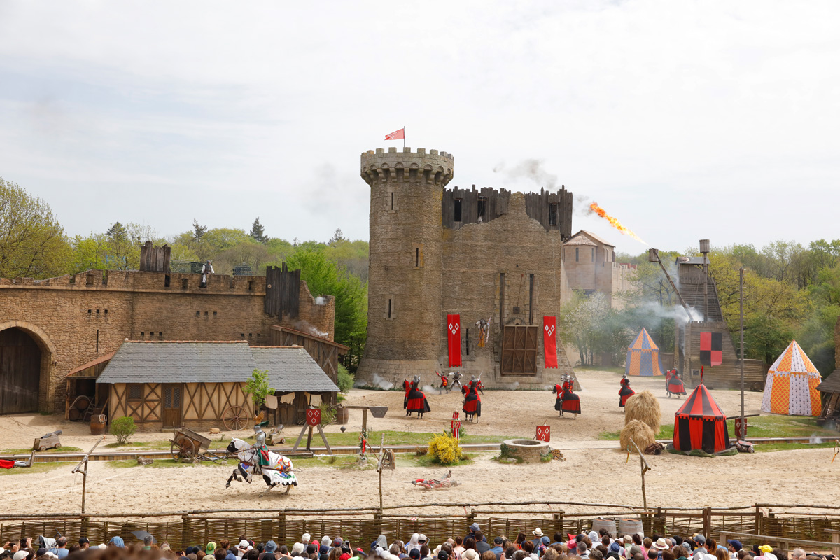 Le Puy-du-Fou, c’est donc avant tout une affaire de grand spectacle, avec de gros moyens : du son, de la lumière, des cascades, des effets spéciaux et des scènes gigantesques. Par exemple, pour La Cinéscénie, le plus célèbre spectacle du Puy-du-Fou, qui se joue la nuit avec 2 400 comédiens, la “scène” fait 23 hectares (plus de 32 terrains de foot) !
