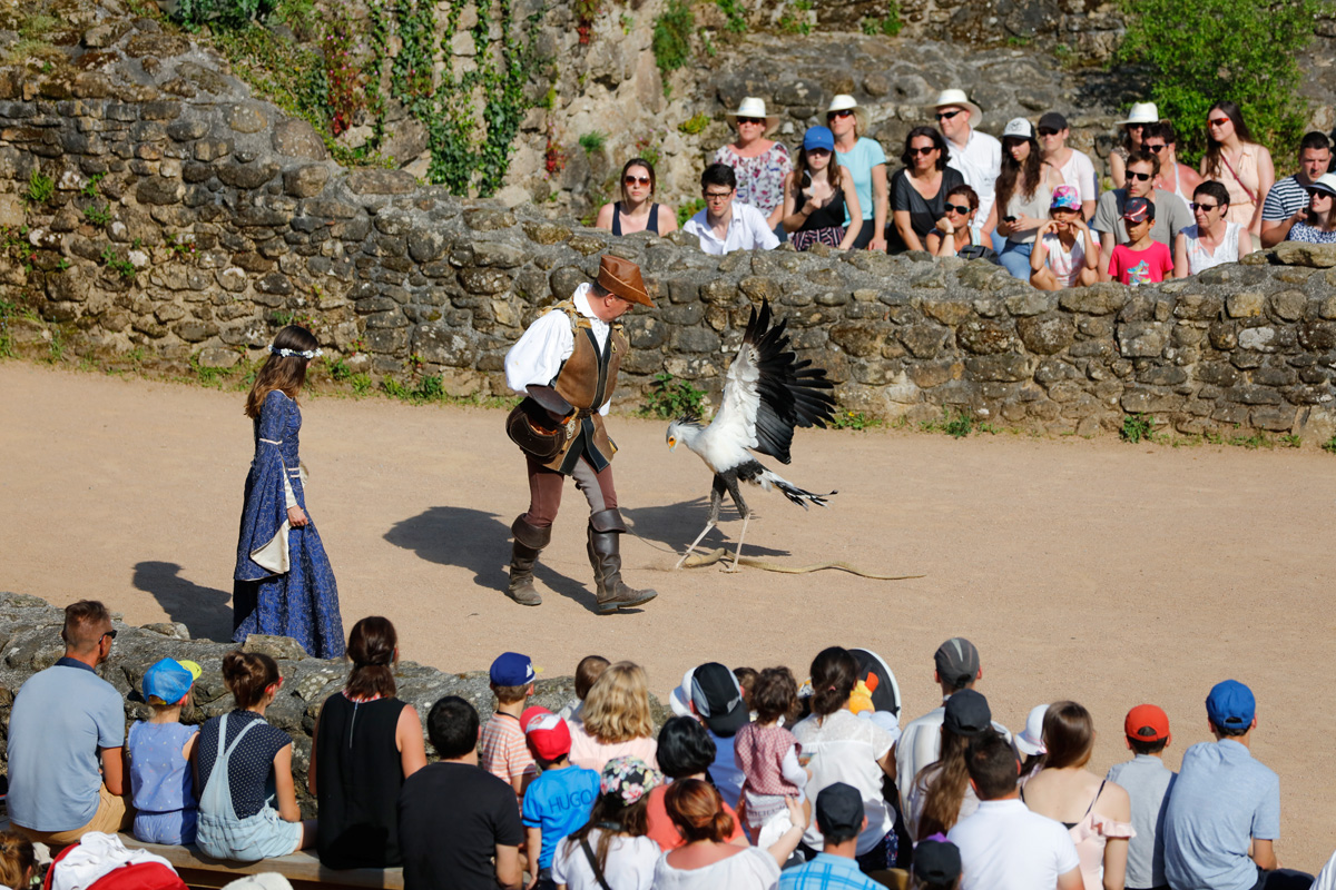 Parmi les milliers d’acteurs formés pour se produire au Puy-du-Fou, certains sont très surprenants : des chevaux, des faucons, des aigles, des cochons, et même des chèvres, entraînés, eux aussi depuis tout petits, à devenir des acteurs ! À marcher au pas, à ne pas prendre peur, ou bien à faire semblant de tomber… Dans les coulisses des spectacles, pour dresser, nourrir, bichonner tous ces animaux, on trouve des personnes passionnées, comme Jean-Louis, le maître fauconnier, qui est “tombé” dans la fauconnerie à l’âge de 6 ans, et Sandy, qui nourrit ses petites chèvres au biberon et sait esquiver comme personne Olive la truie (et ses 300 kilos). Il y a aussi Anaïs, responsable de l’alimentation des 206 chevaux de l’écurie. Elle veille sur eux comme une maman et est à l’écoute de leurs humeurs ou de leurs bobos.