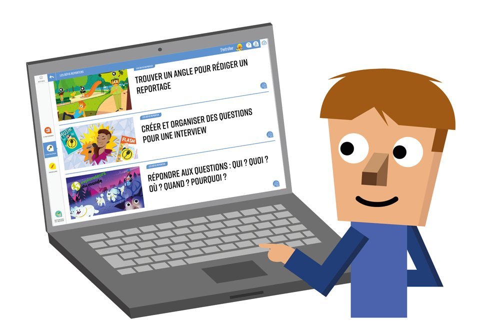 – Dans l’espace « Produire », tu auras l’occasion d’écrire tes propres articles et – pourquoi pas ? – de créer un journal sur le web. Ton enseignant ou ton animateur t’aideront à chaque étape. Tu pourras aussi partager ton travail avec d’autres élèves, n’importe où en France… et dans le monde : une bonne façon de rencontrer de nouveaux correspondants !