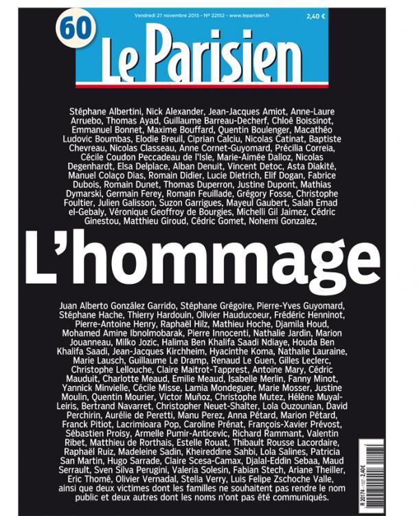 Du côté des médias, plusieurs grands journaux français ont choisi de citer le nom des 130 victimes sur la une, c’est-à-dire la première page. Sur leur site Internet, certains ont fait le portrait de chacune des 130 personnes décédées.