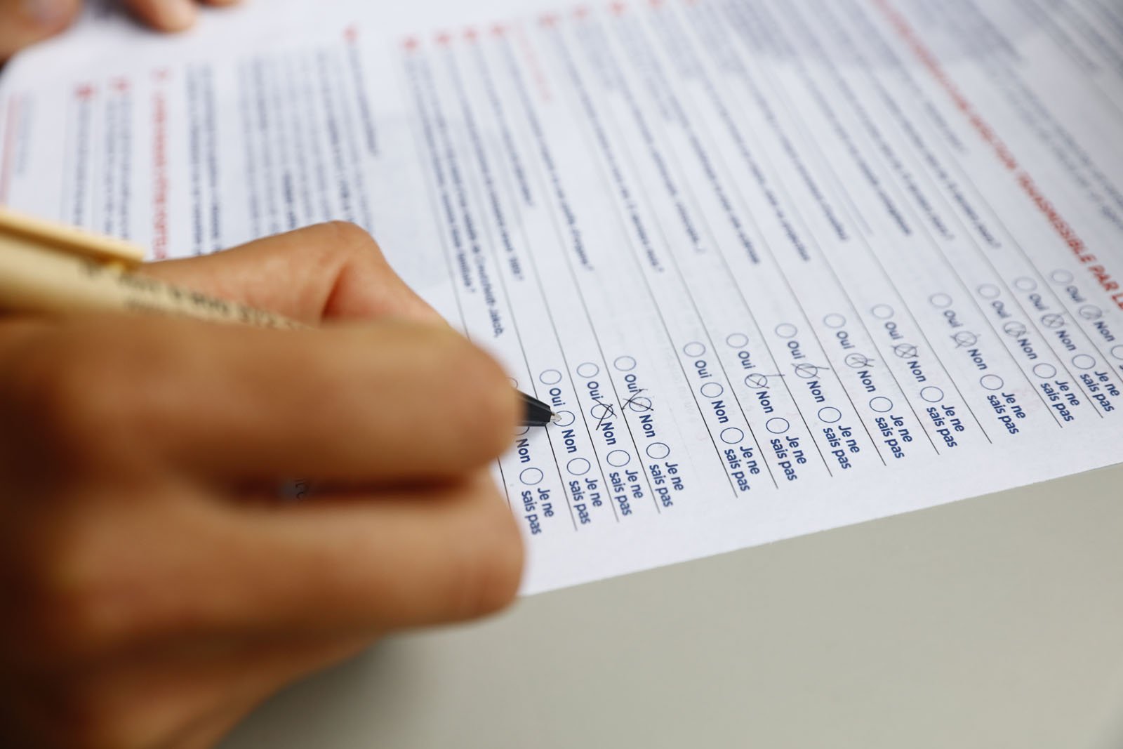 - Avant de donner leur sang, les donneurs doivent répondre à un questionnaire sur leur santé. © Vincent Gire / Milan presse