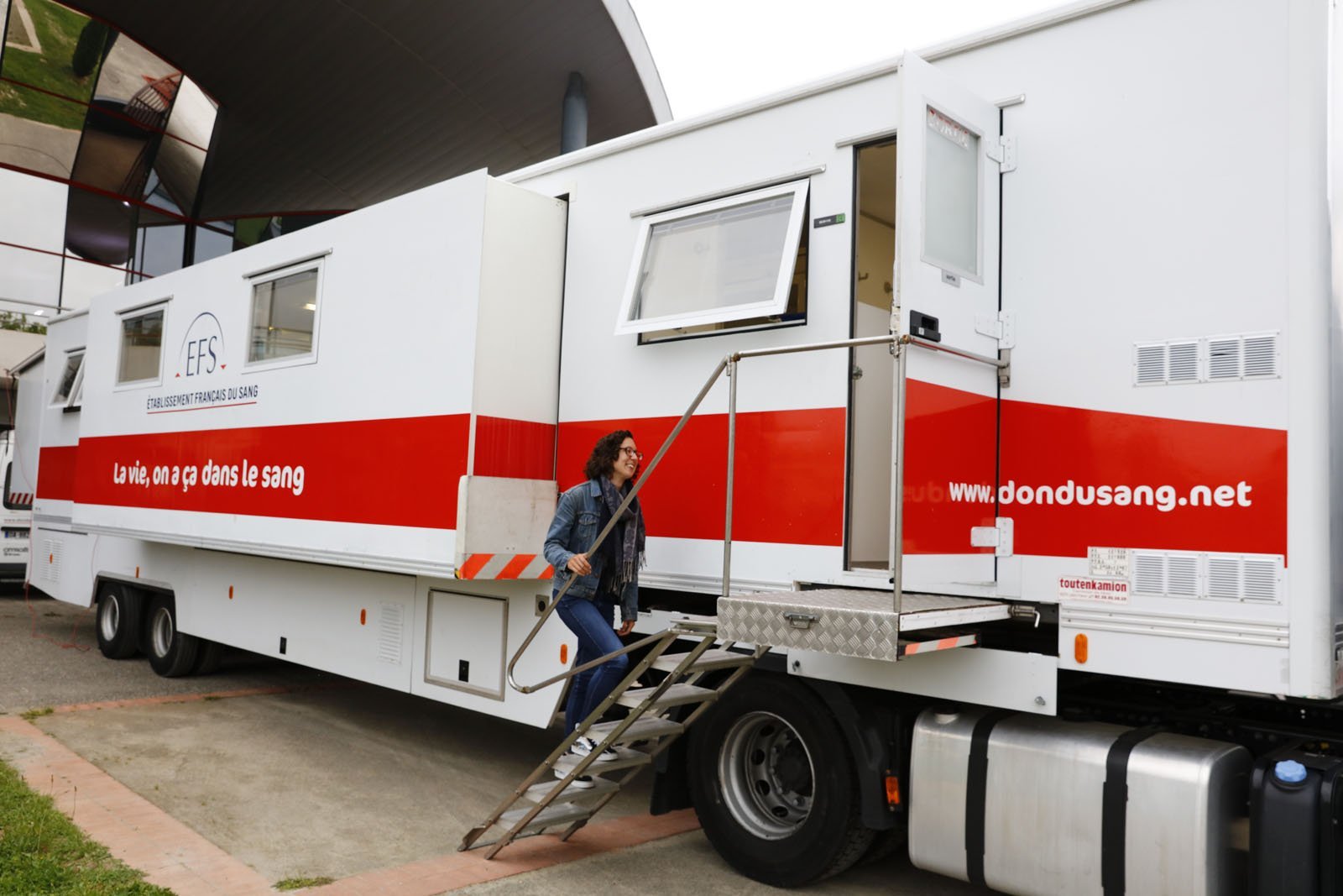 Plusieurs fois par an, le camion de l’Établissement français du sang fait le tour de France à la recherche de donneurs. © Vincent Gire / Milan presse