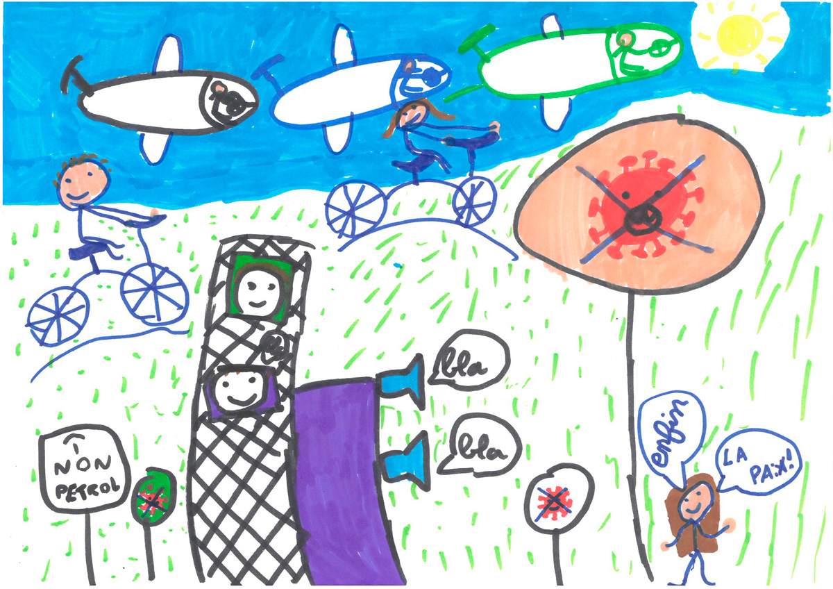 Louise, qui est en CM1, nous a même écrit une poésie sur la vie d’après. Elle y parle de rester prudents, mais aussi de s’amuser et de prendre soin de ceux qu’on aime. Voici comment se termine son poème : « C’est pas l’épidémie qui va nous empêcher de vivre une vie pleine d’envie. » Bien dit !