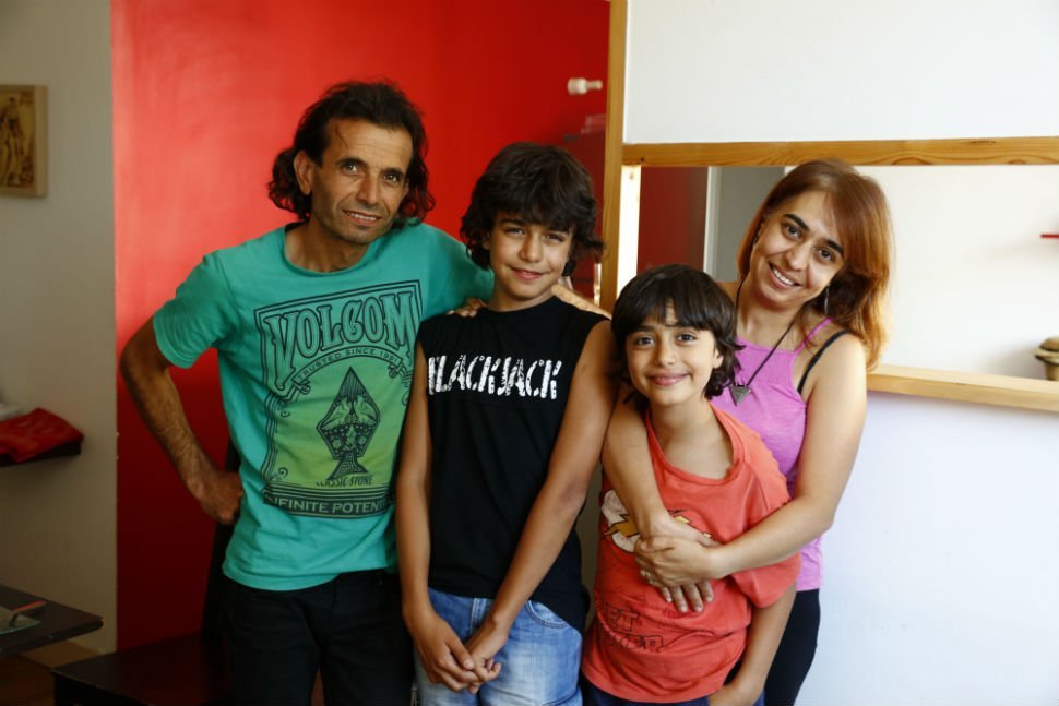 - Fajer et Joud avec leur papa Bassam et leur maman Oula. (© Vincent Gire/Milan presse)