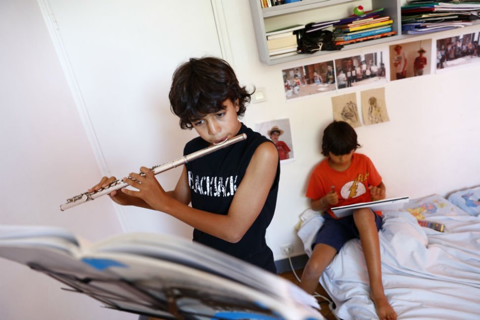 Les enfants sont toujours aussi passionnés par la musique ! Ils sont tous les deux inscrits au conservatoire d’Aurillac. Joud joue du clavier et aimerait bien essayer la batterie. Fajer, lui, a échangé sa flûte traversière contre un saxophone. Un instrument très lourd et qui demande beaucoup de souffle !