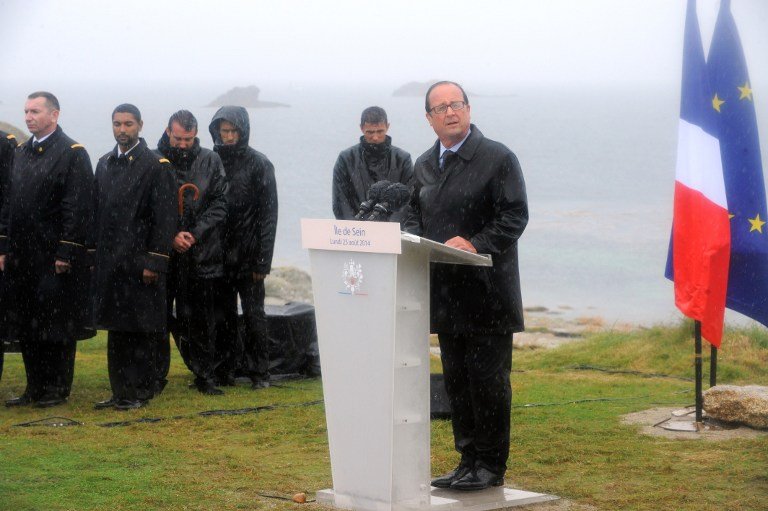 - Le discours en déplacement : le 25 août dernier, le Président a prononcé sous la pluie un discours commémorant le débarquement. © Fred Tanneau/ AFP.