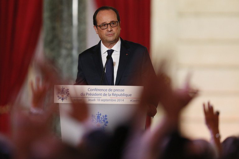 - La conférence de presse : François Hollande répond, tous les six mois, aux questions des journalistes, comme ici, le 18 septembre 2014. © Patrick Kovarik/ AFP