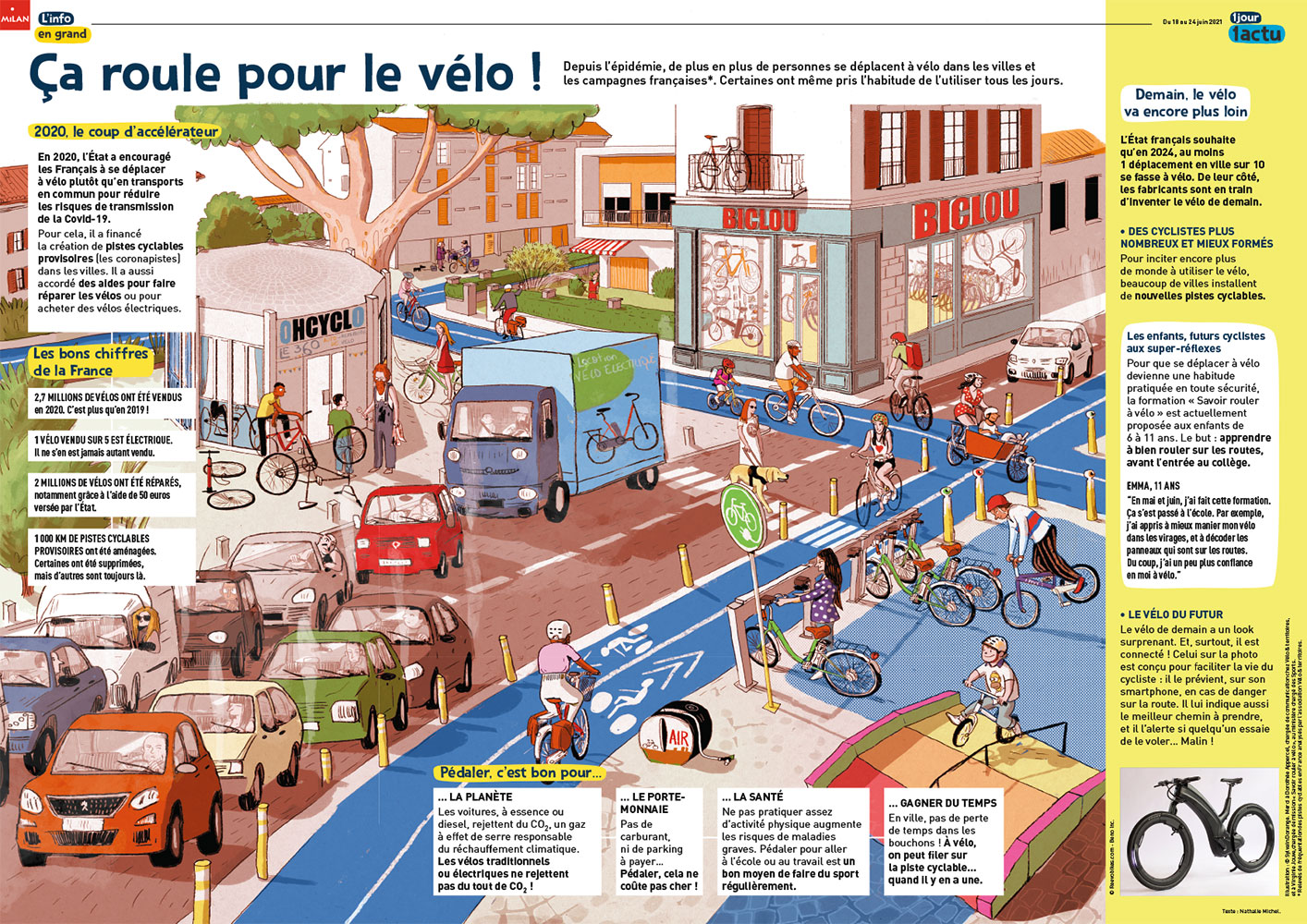 Envie d’en savoir plus ? Retrouve un dossier complet sur le vélo dans l’hebdo 1jour1actu n° 318, paru le 18 juin 2021.