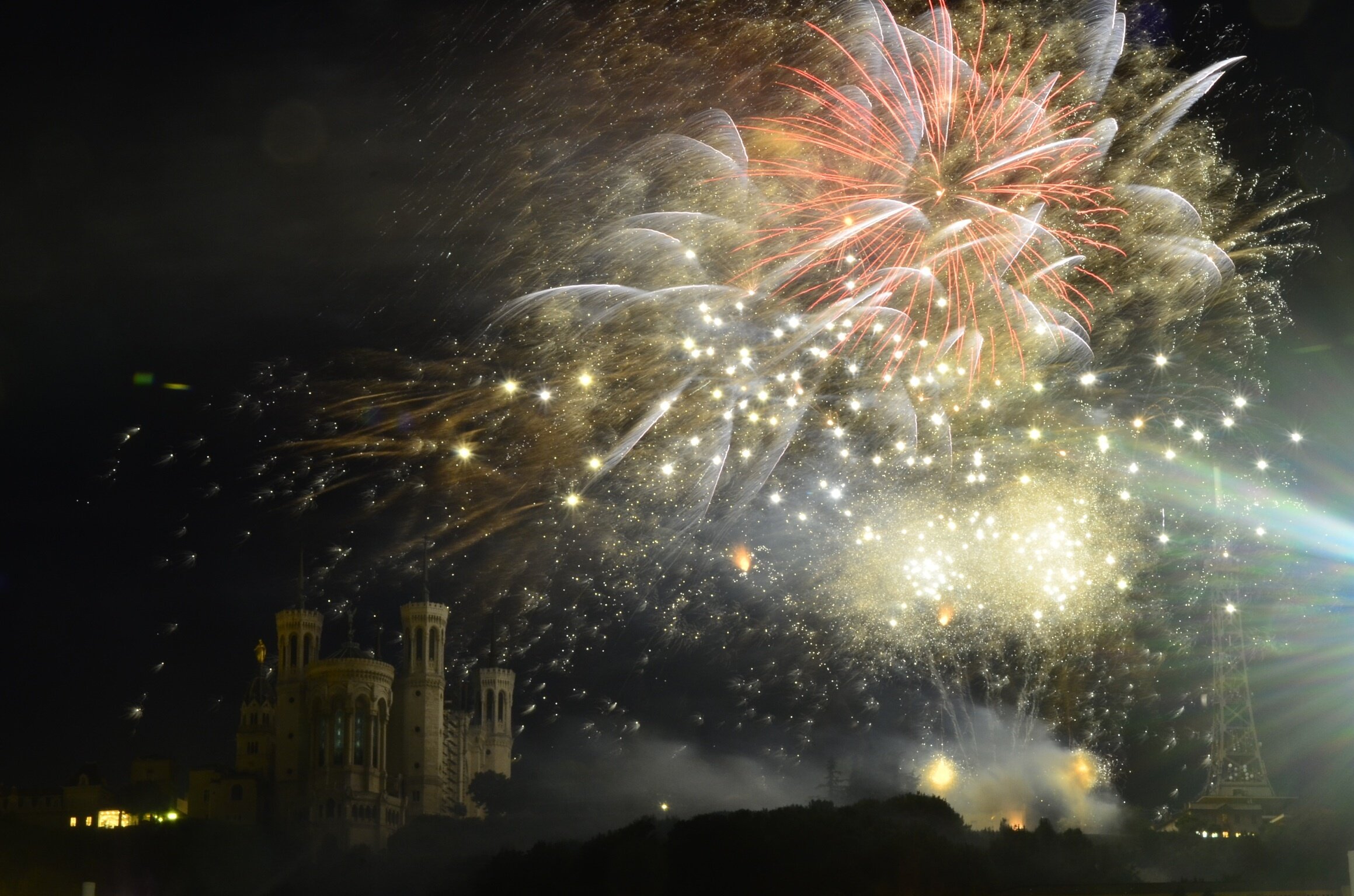 - À la basilique de Fourvières, lors d’un feu d’artifice du 14 juillet, à Lyon. © Tusco