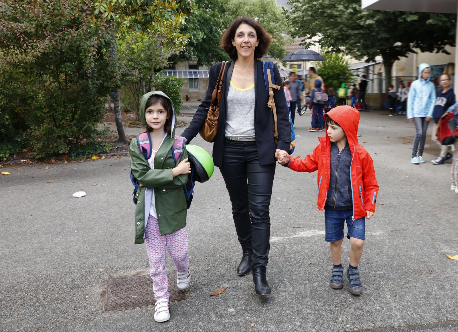- Aujourd’hui, Capucine et Benjamin sont ravis : leur maman est venue les chercher à l’école. Depuis le début de la campagne de Catherine, cette maman se partage entre les électeurs et sa famille (© Vincent Gire / Milan presse).