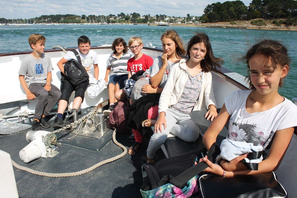 L’île aux Moines compte une école maternelle et primaire, mais est trop petite pour avoir son propre collège. Depuis leur entrée en 6e, Ysée, Lucy, Kim, Elouan, Xavier, Luc, Hugo et Titouan n’ont donc pas d’autres choix que de rallier tous les jours le continent. « La traversée ne dure vraiment pas longtemps, à peine 10 minutes », explique Xavier. Une traversée parfois perturbée par une météo capricieuse. « En début d’année dernière, il y a eu une tempête et le bateau a eu du mal à démarrer, mais c’est rare », se souvient Elouan. « L’hiver, quand il pleut, c’est quand même moins agréable », reconnaît Ysée.