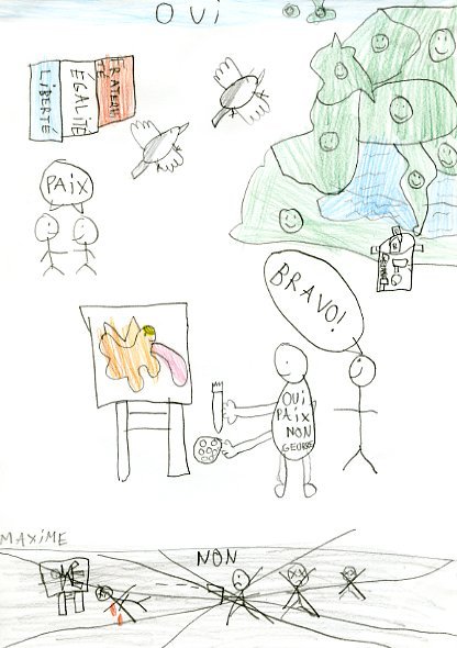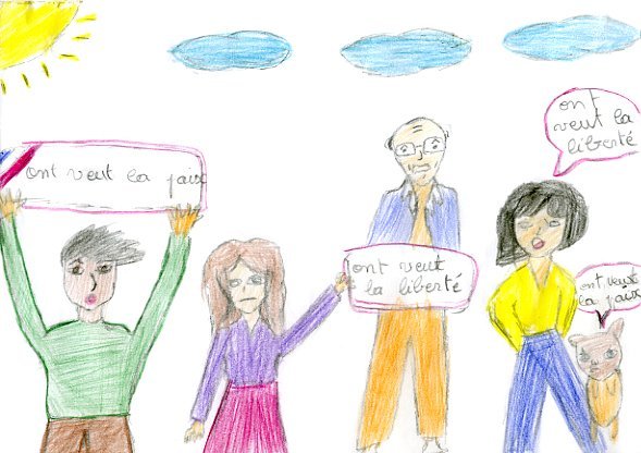 Clique sur ces images pour découvrir des dessins réalisés en faveur de la paix par les élèves de CM1-CM2 de l’école de Toulouse :