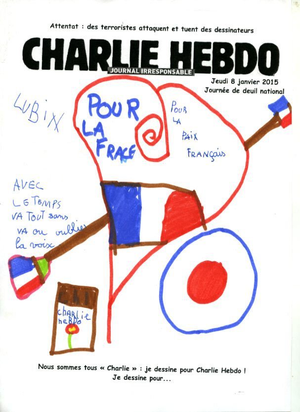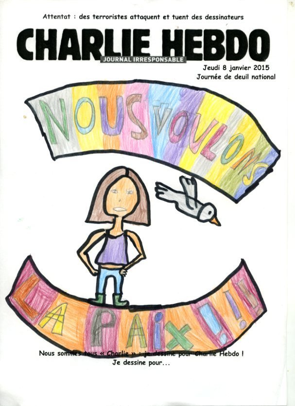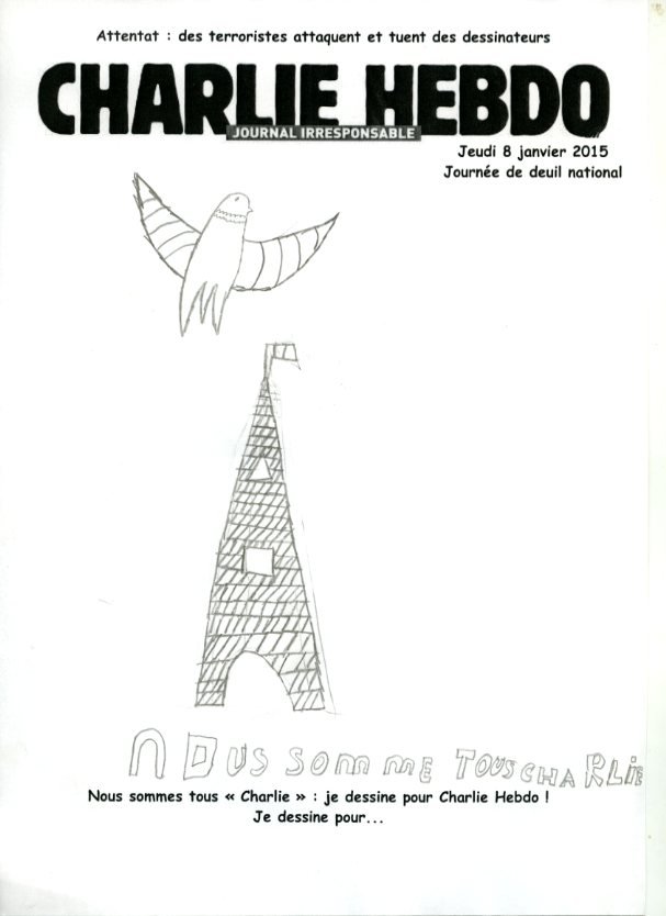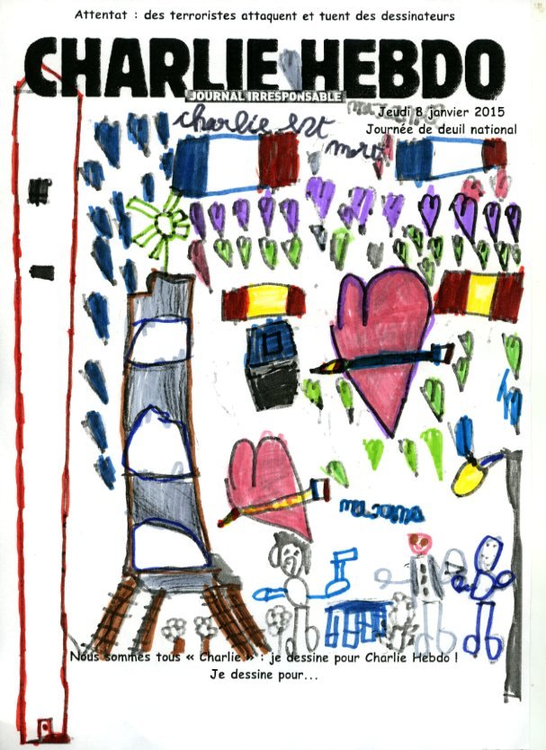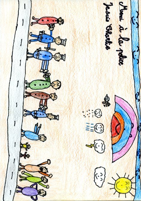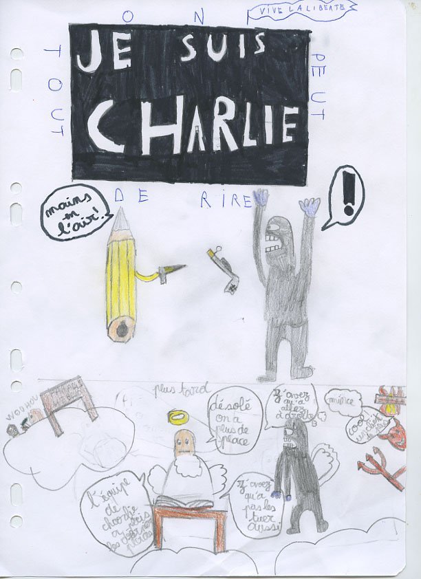 Tu peux retrouver d’autres dessins, en te rendant avec tes parents sur la page Facebook « Nos enfants sont Charlie ».