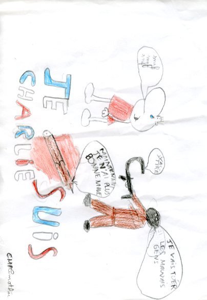 Pourquoi tuer des gens pour prendre le pouvoir, mener le monde. On a tous le droit de vivre. Les terroristes pensent que l’on s’est moqué des musulmans, c’est faux ( je le suis moi-même). J’ai eu très peur. Nous arrivons à faire la paix maintenant. Ce sont les terroristes qui sont morts mais je ne suis pas content qu’ils soient morts. Tout le monde a le droit de vivre même les meurtriers. Liberté, égalité, fraternité, je suis Charlie.