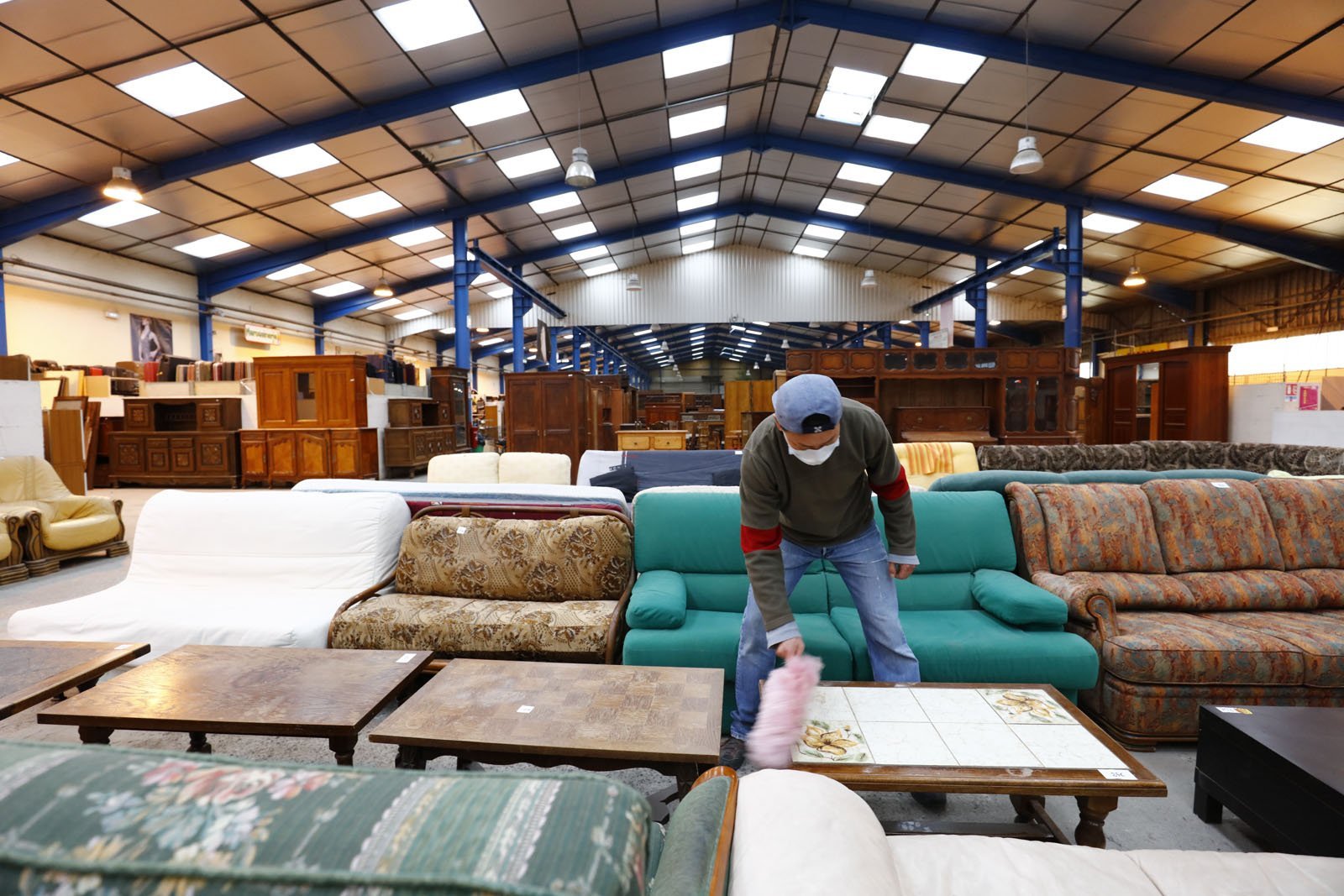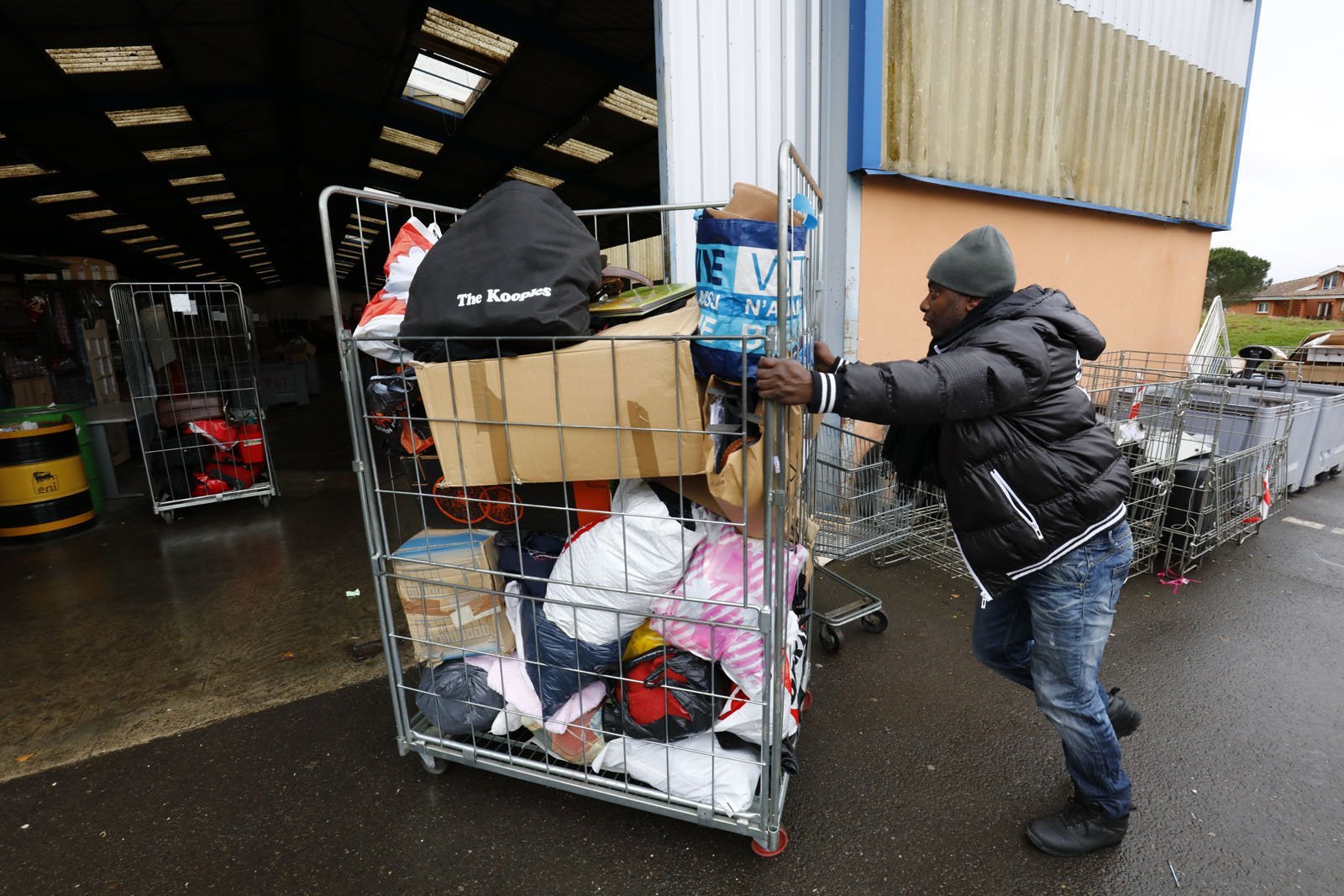 À 14 heures, tout le monde à son poste ! C’est l’heure d’ouvrir la boutique, un immense hangar où se trouvent tous les objets à revendre. Des centaines de gens sont déjà devant la porte, à attendre l’ouverture. Car les habitués savent qu’à Emmaüs on peut faire de bonnes affaires : c’est trois fois moins cher qu’ailleurs !