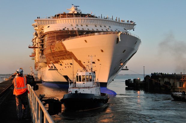 Quatorze mois ont été nécessaires pour monter la coque de l’Harmony of the Seas. Mi-juin, ce bateau a été mis à l’eau. Une étape délicate. Pour parcourir les 2 kilomètres de distance entre la cale sèche où le bateau a été assemblé vers un bassin à flot, il a quand même fallu 8 remorqueurs, selon Jean-Yves Péan, responsable des travaux.