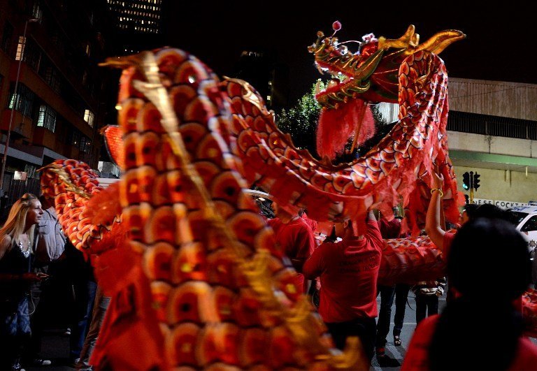 - La danse du dragon à l’occasion du Nouvel An chinois 2015, à Johannesburg, en Afrique du Sud. © Mahmut Serdar Alakus / Anadolu Agency / AFP