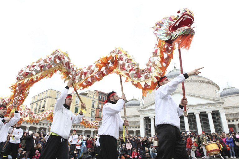 - Des Italiens et des Chinois fêtent le Nouvel An chinois à Naples, en Italie, en 2015. © PH. CONTROLUCE / Roberta Basile / AFP