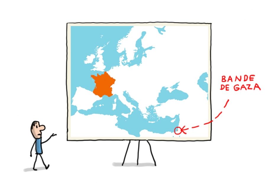 La bande de Gaza est une bande de terre d’environ 40 kilomètres de long, au Proche-Orient. C’est un territoire palestinien. D’un côté, il est bordé par la mer Méditerranée. De l’autre, il est entouré par Israël et l’Égypte. Régulièrement, des violences éclatent entre la bande de Gaza et son voisin, Israël. Des échanges de bombes font des victimes, des deux côtés de la frontière.
