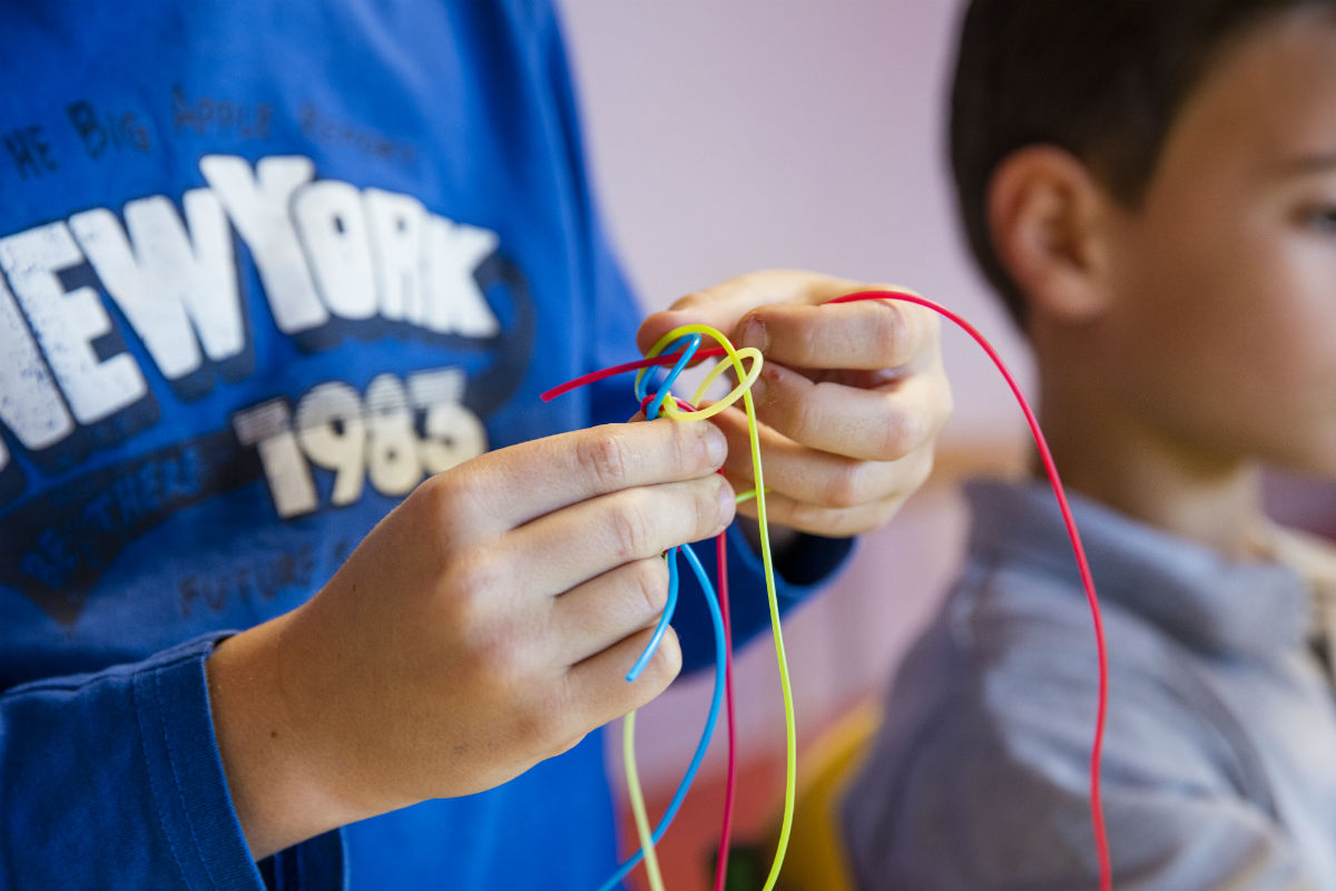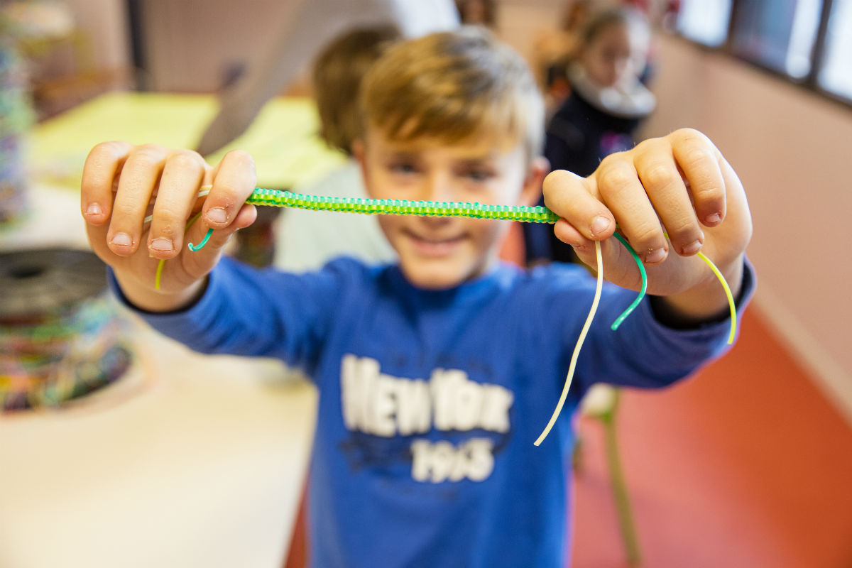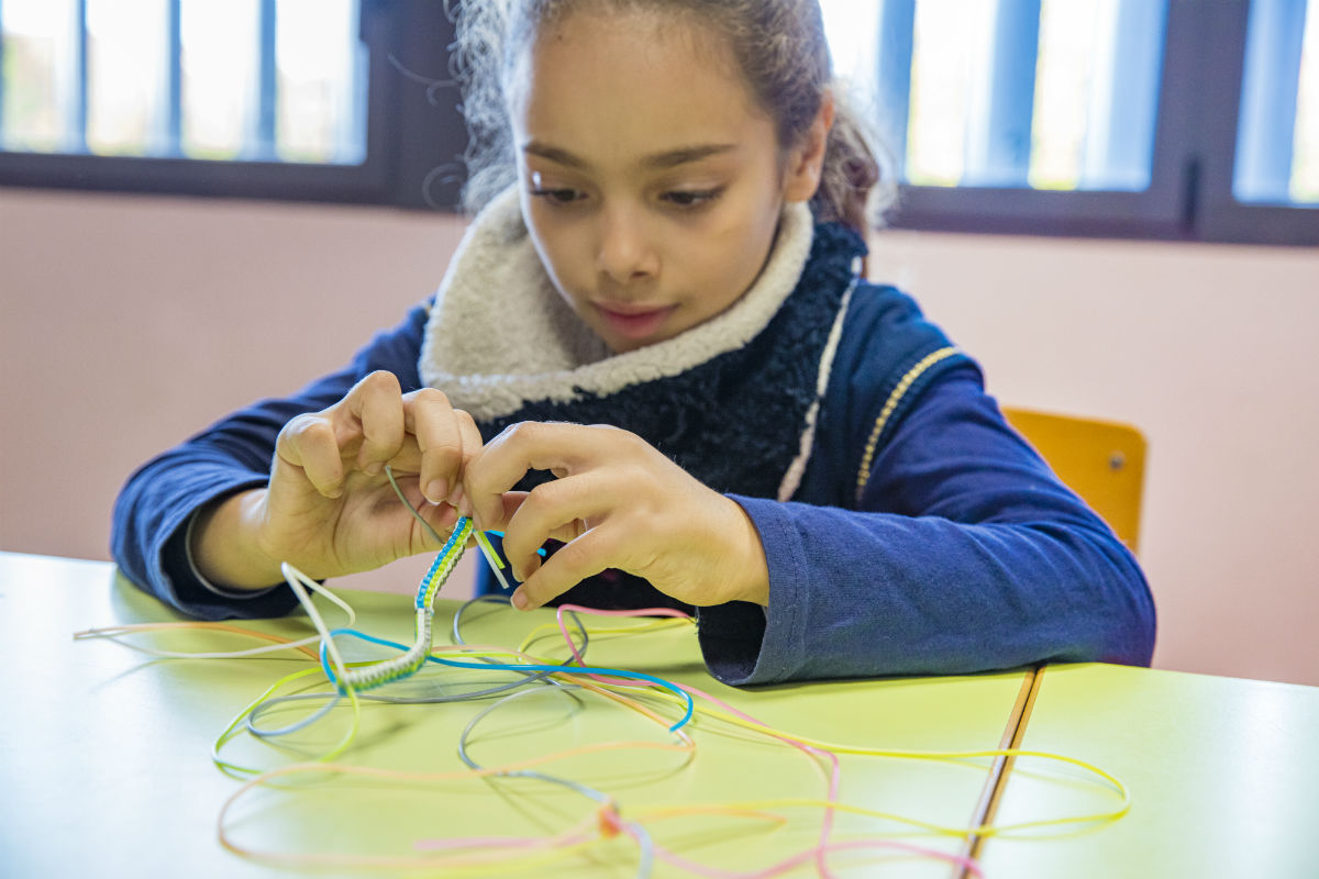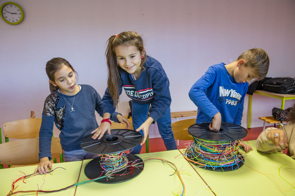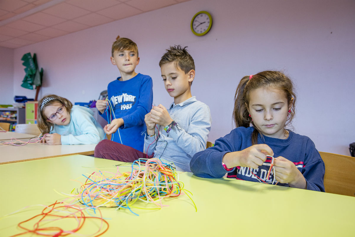 Adria, Janelle, Sara, Ella, Gabriel, Clara, Maëlle, Inès, Colin, Roxane et Isaac se mettent au travail, en papotant et en riant. Car, pour eux, cet atelier, c’est surtout l’occasion de passer un bon moment entre copains. « En tout, j’ai déjà fait une trentaine de scoubidous, déclare Adria, 8 ans. Je trouve ça amusant ! »