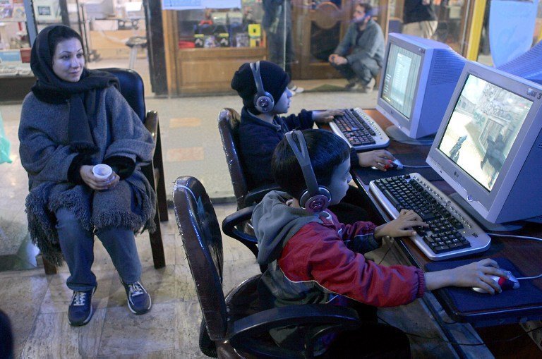 - Une maman iranienne se tient près de ses fils en train de jouer aux jeux vidéo. Comme ailleurs sur la planète, les enfants sont fans des manettes et des écrans ! © AFP / ATTA KENARE