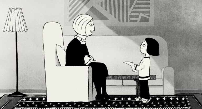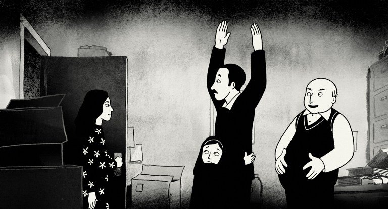 Quelques photos extraites de la série « Persepolis » (publiés par l’Association) et le portrait de l’auteur, Marjane Satrapi.
