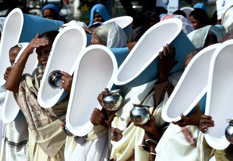 Des cuvettes de W.-C. sur l’épaule, ces femmes participent à une manifestation pour la Journée mondiale des toilettes ! Habituellement, les journées mondiales, c’est pour parler de sujets importants ou graves, comme la défense de l’environnement, le racisme ou la lutte contre le sida. Mais les toilettes… pourquoi ont-elles leur Journée mondiale ?
