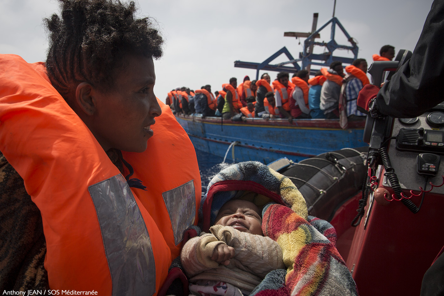 - Ils commencent par secourir les personnes les plus fragiles, comme les blessés ou les malades, ainsi que les femmes et les enfants. (© Anthony Jean/SOS Méditerranée.)