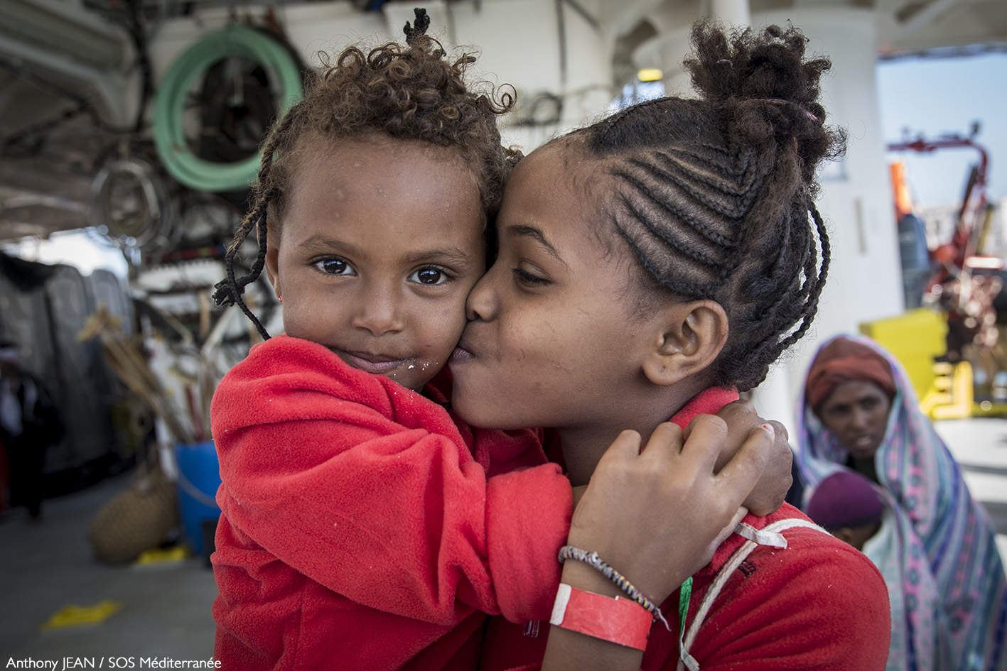- Depuis 3 ans, l’Aquarius, ce grand bateau de sauvetage, parcourt la mer Méditerranée pour venir en aide aux migrants qui fuient la Libye à bord de petits bateaux de fortune. (© Anthony Jean/SOS Méditerranée.)