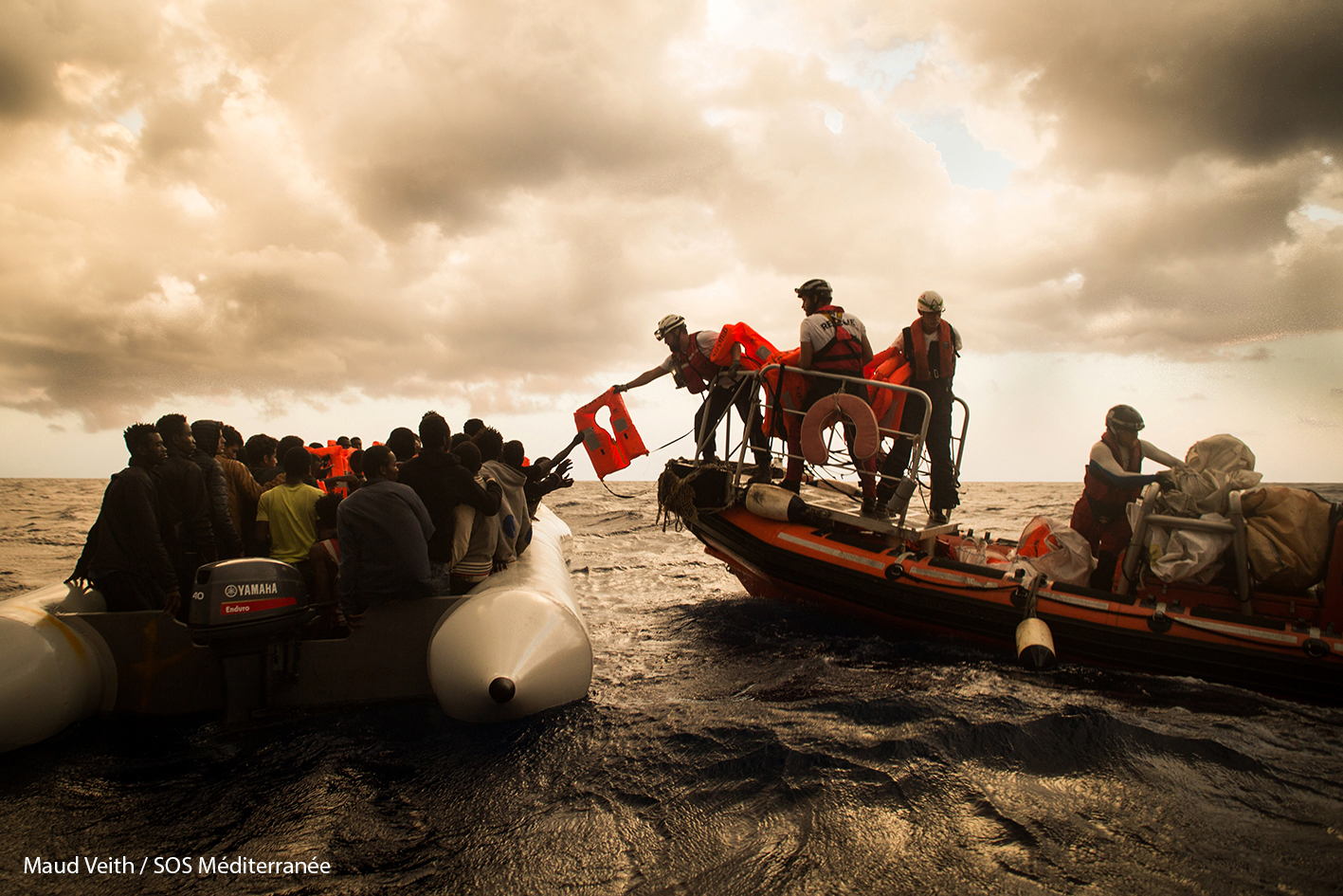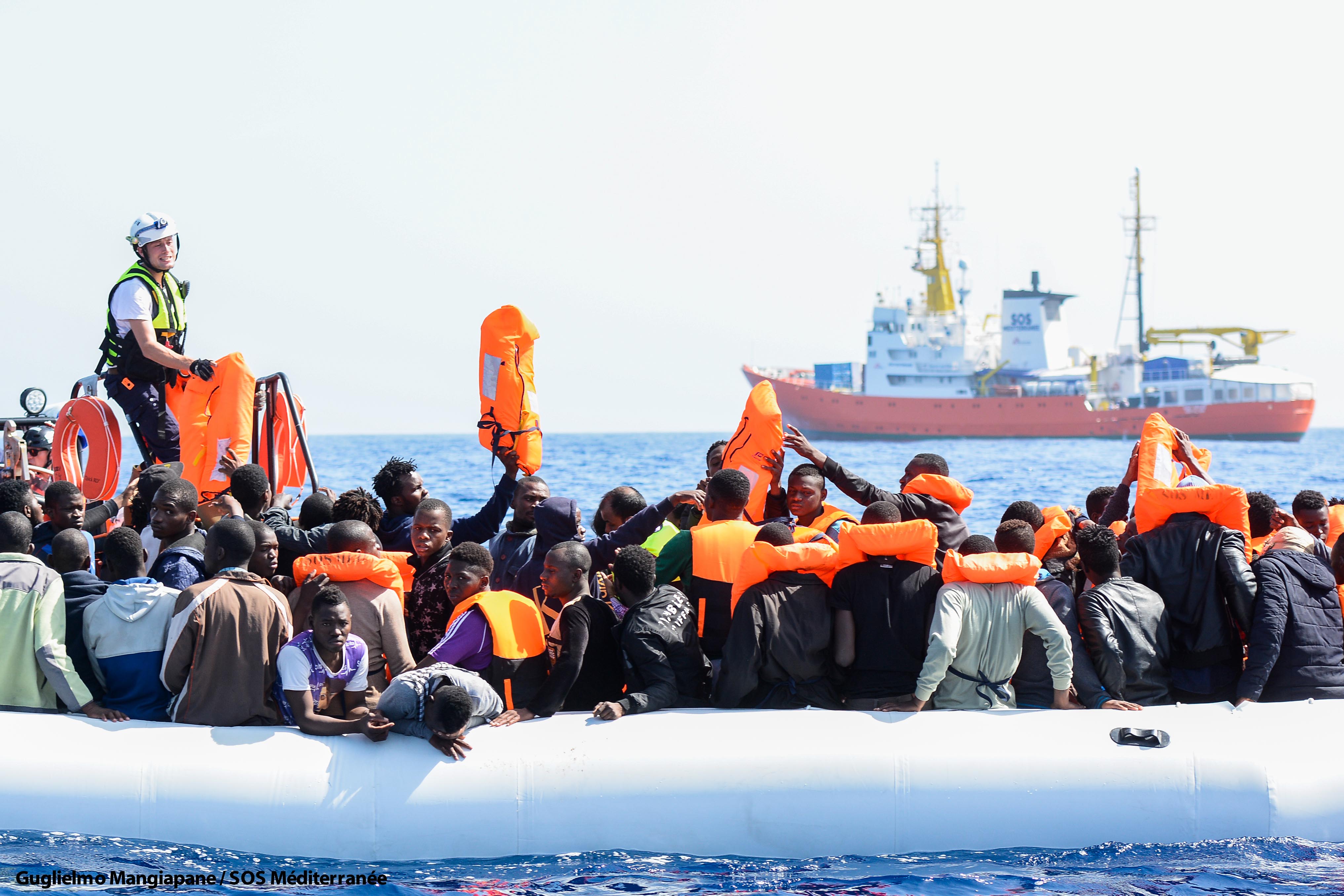 - Ces migrants ont embarqué sur ces bateaux de fortune pour fuir la Libye. Là-bas, ils sont victimes de graves violences car ils ne sont pas Libyens. La plupart de ces personnes viennent d’autres pays d’Afrique, comme le Mali ou l’Érythrée, qu’ils ont dû fuir ou tout simplement quitter dans l’espoir de trouver un travail en Libye… (© Gugliemo Mangiapane/SOS Méditerranée.)